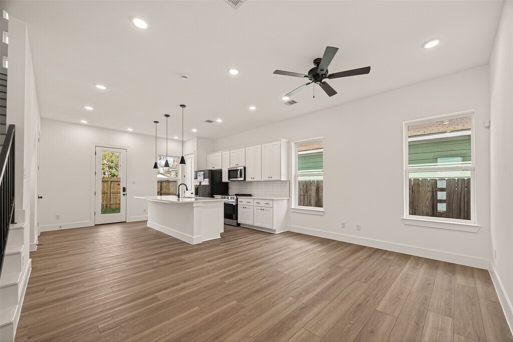 Experience modern living just minutes from Downtown and EADO in this BRAND NEW/NEVER LIVED-IN beautifully designed 2-bedroom,2.5-bath duplex. High ceilings,quartz countertops,and stainless steel appliances create a sleek,elevated feel,while the included French door refrigerator adds everyday convenience. The open layout offers great natural light and contemporary appeal throughout. Upstairs,the spacious primary suite features a frameless glass shower and walk-in closet. Enjoy a fully fenced backyard,dedicated parking,and easy access The Heights,Medical Center,Museum District and more. Refrigerator Included. W/D negotiable. Rental Arbitrage Welcome. MLS# 92193176
