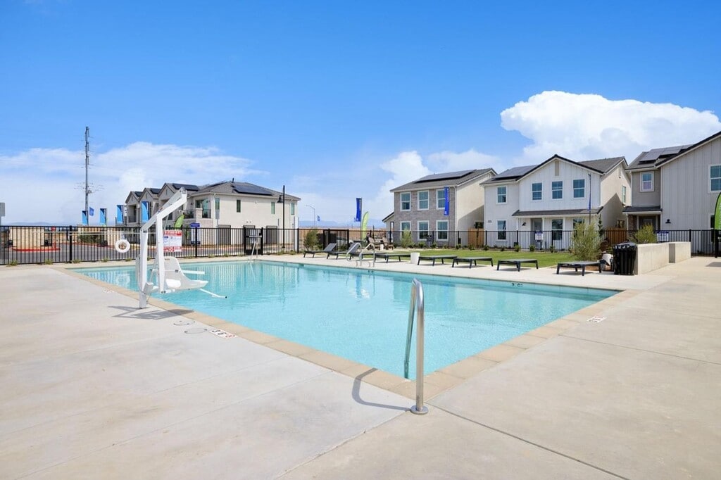 Introducing your like-new home in the gated Brambles Community by Lennar Homes! Solar! This 3-bed, 2.5-bath residence offers approximately 1,893 square feet and a modern kitchen with stainless steel appliances, open living spaces, and a convenient half bath downstairs. Upstairs, the primary bedroom features a walk-in closet and ensuite bath with dual vanities. Enjoy the ease of an upstairs laundry room with washer and dryer included. In addition there is a 2-car garage, and a low-maintenance yard with artificial turf. Enjoy the community pool with a modern lounge area. Don't miss out - schedule a viewing today!