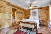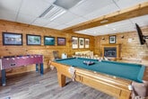 Nestled in the heart of the Great Smoky Mountains, this spacious and charming cabin in Pigeon Forge, Tennessee, is the perfect retreat for your mountain getaway. With its rustic charm and modern amenities, it offers an unforgettable experience for you and your group. This cabin boasts four beautifully appointed bedrooms, each designed with cozy king-size and queen-size beds. The comfortable mattresses and high-quality linens ensure a restful night's sleep, so you can wake up refreshed and ready to explore the Smoky Mountains. A cozy fireplace graces the living area, adding to the cabin's warm and welcoming ambiance. Whether you're unwinding after a day of hiking or simply enjoying a quiet evening in, the fireplace is the perfect spot to gather around and relax. If you're looking for some indoor entertainment, head to the game room, equipped with a pool table, providing hours of fun and friendly competition. Free parking space at the property for four vehicles is available. This Pigeon Forge cabin is a haven for those seeking a peaceful, comfortable, and entertaining retreat. With its four bedrooms, heating, game room, fireplace, flat-screen TV, and outdoor amenities, it offers the perfect balance of relaxation and adventure in the scenic beauty of the Smoky Mountains. It's an excellent choice for a family vacation, a getaway with friends, or a romantic escape. Local attractions include Dollywood, Dolly's Splash Country, Cades Cove, Downtown Pigeon Forge and Gatlinburg, Dolly's Stampede, Gatlinburg Golf Course, Ober Gatlinburg, and Smoky Mountain National Park. As you make your way to the cabin and travel around the area, keep in mind that some of the mountain roads can be steep and winding—that's part of the charm of being in the Smokies! Drive cautiously, especially if it’s your first time in the area, and give yourself a little extra time. Most guests make the trip just fine, and the views are absolutely worth it! Check-in time is no earlier than 4:00 P.M. and check-out time is no later than 10:00 A.M. Late check-outs will result in additional charges. Any violation of the smoking policy will incur a $400.00 fine plus the cleaning costs necessary to remove smoke odors from the unit and linens. No pets and no parties are allowed. For same-day late check-ins, you need to get the host's approval before booking. [SI]