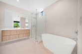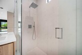 2023 Construction featuring a modern design with a pool, 3 bedroom/3.5 bathrooms, 2029 living sq ft & 2,382 total sq ft. One car garage & 1 outdoor parking space in driveway. Aluminum electric gate for privacy. Open floor plan concept, sleek kitchen featuring italian cabinets with quartz countertops & large island with a waterfall. Stainless steel appliances including electric cooktop, wall oven/microwave combo, dishwasher. Hard wood floors throughout. Master bathroom features double vanity, free-standing tub & large shower. Solar shades throughout. Custom closets installed. Exterior outdoor cameras and security panels all in place. Ring doorbell installed. Close proximity to Coco Walk, Merrick Park shops. Amazing location. MLS # A11966080