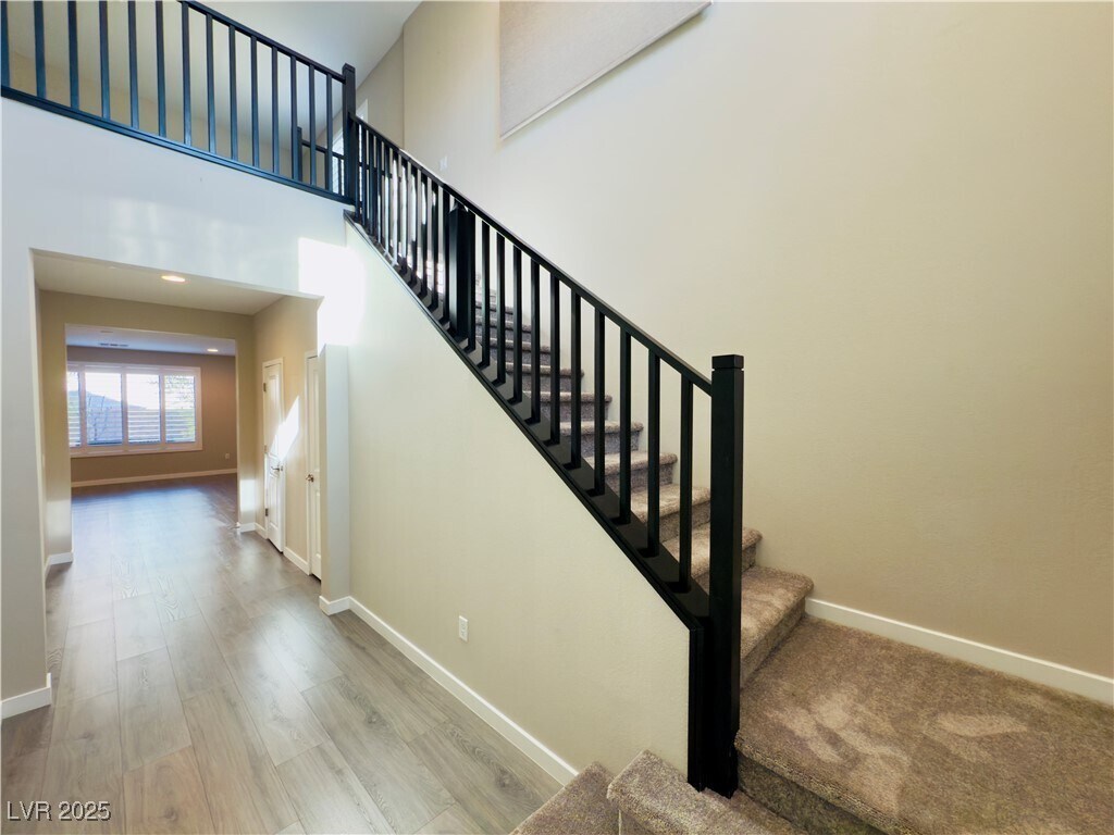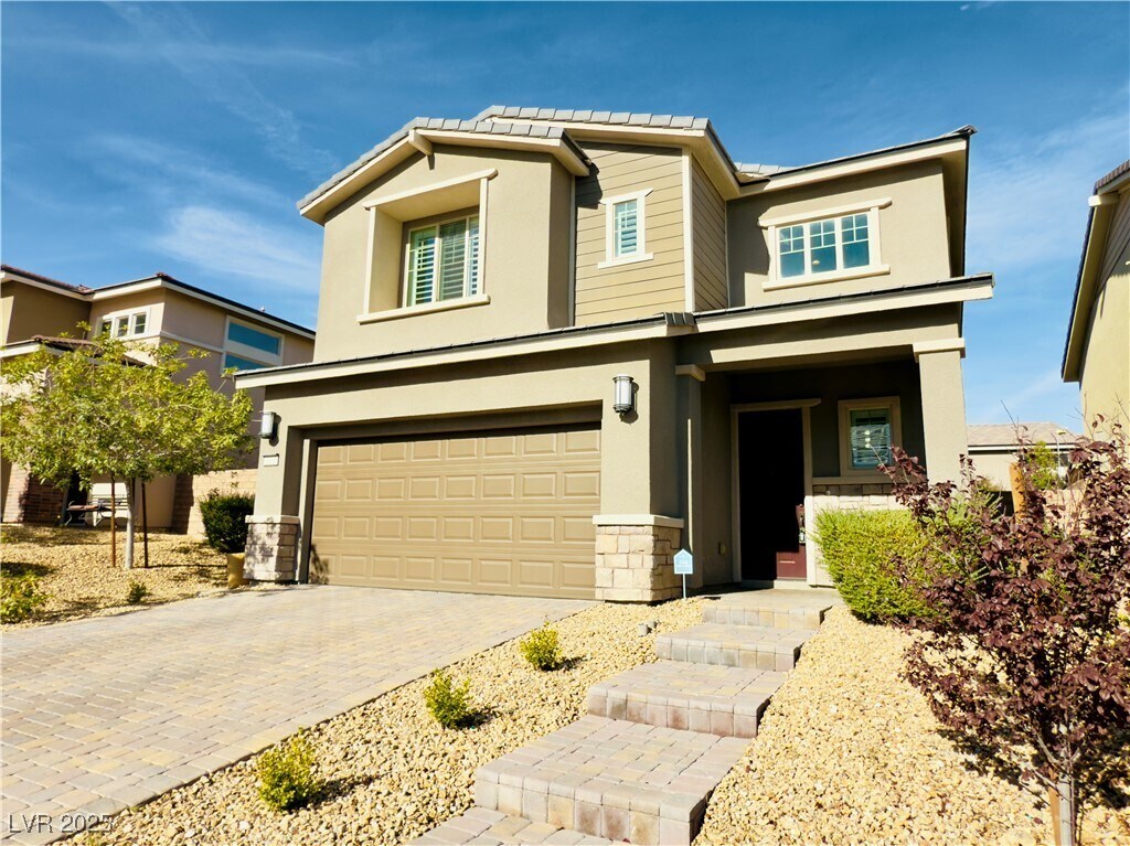 Turn-Key Summerlin Reverence Beauty! All new flooring in pristine condition with gorgeous neutral gray tones throughout. Den with doors can serve as a 4th bedroom downstairs. Spacious loft upstairs. Kitchen features a large island, pantry, extended upgraded cabinetry, and premium appliance package. Primary bedroom with recessed ceiling and recessed lighting throughout the home. Luxury primary bath includes a huge step-in rain shower with seating, multiple shower heads, natural light, and generous space. Laundry room offers extra storage and a deep sink. Upgraded shutters and window coverings throughout. Tankless water heater and large overhead garage storage racks. Beautiful backyard landscaping with covered patio perfect for outdoor cooking and dining. Appliances included. Gated community with all the benefits of Summerlin master-planned living. Move-in ready perfection!