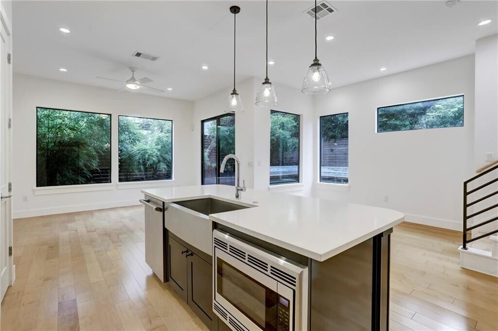 Gorgeous 3 bed / 2.5 bath home nestled in the heart of 78704 available for lease. The ground floor features an open kitchen, living, dining layout with direct access to a covered deck, perfect for indoor/outdoor entertaining. The kitchen is a chef's dream with a large quartz island, stainless steel appliances, and includes ample storage throughout. The large primary suite features a private, covered balcony and a luxurious ensuite bath with marble counters + tile, dual vanity, and walk-in shower. Outside, the yard has been beautifully landscaped with turf and custom deck-work. The home has an attached 1 car garage. Don't miss your chance to live in one of Austin's most desirable neighborhoods.