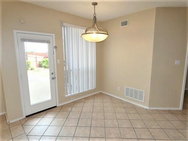 Beautiful home in the highly desirable Creek Crossing neighborhood of Mesquite, featuring vaulted ceilings and abundant natural light. This two-story house includes 3 bedrooms and 2.5 baths, with the Master Suite downstairs separated from the other bedrooms. The open floor plan on the first floor is perfect for entertaining. The utility room is conveniently located near the kitchen, which boasts eat-in bar tops that can seat up to five people. The spacious and unique backyard adds charm, while a private entry leads to the two-car garage. Experience the best of Mesquite living here!
