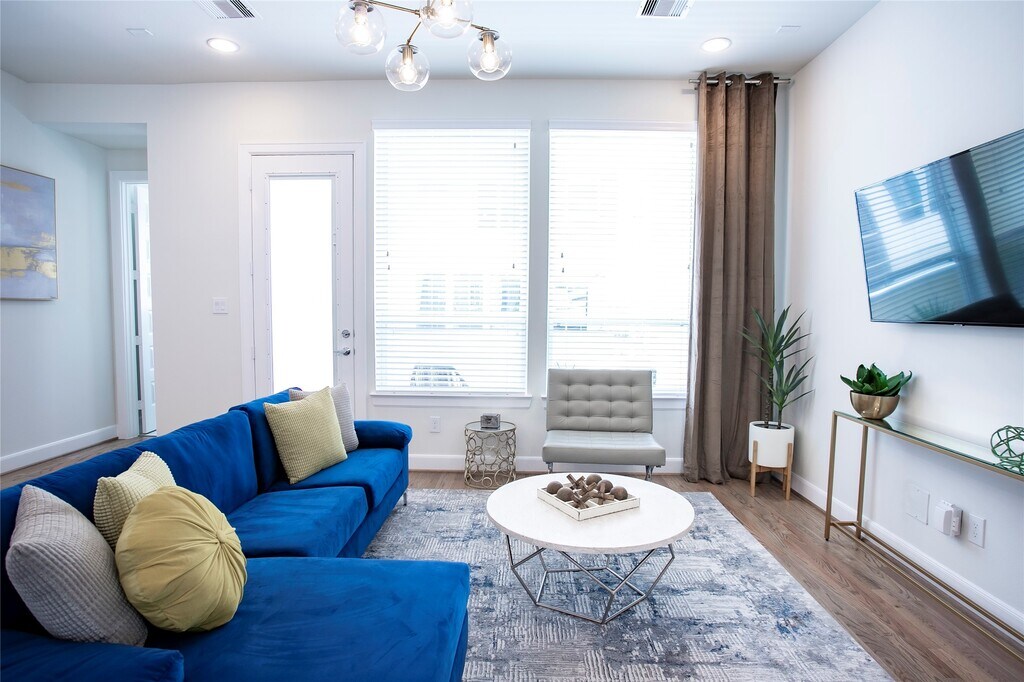 Welcome to the Luxury East River Community,where sophistication meets convenience just steps from rooftop lounges,upscale patio dining,and scenic riverfront paths. This modern "FULLY FURNISHED" three-story residence offers an open-concept layout with soaring ceilings,abundant natural light,and sleek finishes throughout. The gourmet kitchen features quartz countertops,premium stainless steel appliances,and designer cabinetry—perfect for entertaining or everyday luxury. The primary suite boasts a spa-inspired bath,dual vanities,and a spacious walk-in closet,while a private balcony offers stunning city views. Enjoy a low-maintenance lifestyle with no yard upkeep,and the ultimate in convenience with utilities included,high-end appliances provided,and an amazing city-view balcony. Luxury living awaits—just minutes from Downtown's vibrant East River development. MLS# 85757125