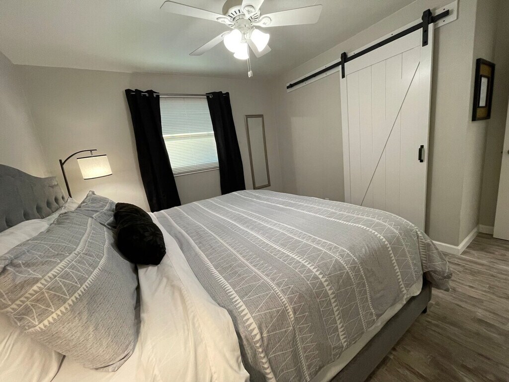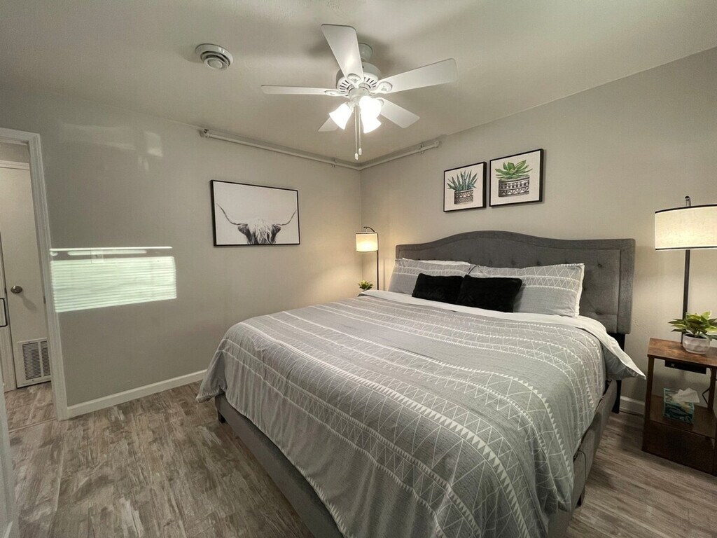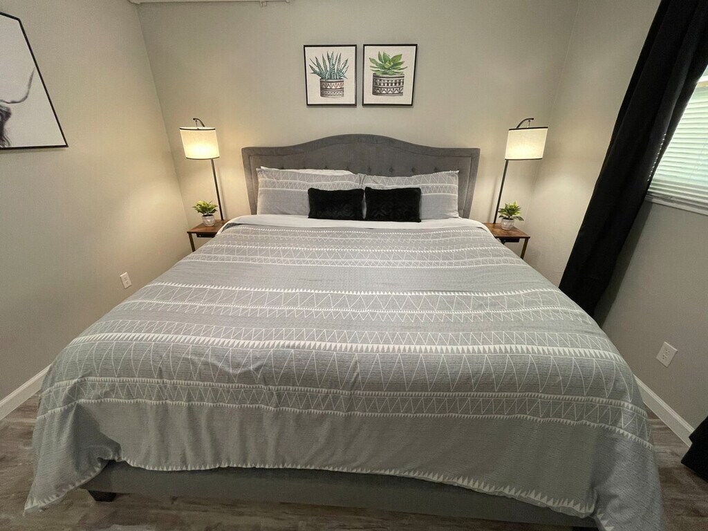 Stay just 2 miles from downtown Appleton in this inviting 2-bedroom, 1-bathroom suite on the upper level of a multi-unit complex. Perfect for a month-long getaway, this apartment offers easy access to local parks, museums, and the Fox Cities Performing Arts Center. Enjoy family fun at Badger Sports Park and unwind with a movie on the Smart TV after a day out. Affordable, comfortable, and hassle-free, your ideal extended-stay home base awaits. Guests have full access to all spaces, including a living room with a comfy sofa and a 55" HD Roku TV for movie nights. The apartment features two bedrooms, one with a king-size bed and the other with a cozy queen bed. A dining nook provides the perfect spot for meals or intimate gatherings, and the fully equipped kitchen is ideal for cooking and enjoying homemade meals. Fast 100mbps Wi-Fi is available for work or streaming, and free unassigned parking is provided behind the building. Pets are welcome with a minimal fee of $200 for up to 2 pets for stays of more than 30 days. Additional or unauthorized pets incur a $150 fee per pet, and extra cleaning, if required, is $50. Smoking or vaping is not allowed inside the unit or garage, with a $500 fee for violations. Located just off Hwy I-41, you’ll be minutes from major retailers, supermarkets, and local favorites, with Walgreens less than a 5-minute walk away. Drive times to nearby spots include Downtown Appleton in 5 minutes, Fox Cities Performing Arts Center in 3 minutes, and Appleton Airport (ATW) in 15 minutes. The apartment is also close to hospitals, making it great for medical professionals, with Appleton Medical Center just 6 minutes away. Enjoy the convenience of a smart lock entry with a personalized code sent 24–48 hours before arrival. Quiet hours are from 9 PM to 7 AM daily to ensure a peaceful environment. The apartment is perfect for extended stays, specializing in 30+ day bookings, ideal for business travelers, medical professionals, or anyone needing longer-term housing. Extra guests should be announced in advance to provide extra towels. Fast 100mbps Wi-Fi is available for work or streaming, making it a remote work-friendly environment. [SI]