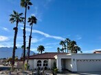 This lovely,updated 3 bedroom,2 bath home sits on a prime corner lot within the exclusive gated community of Shadow Crest. Step through the double doors into foyer with the guest bedroom entrance to the left and then direct through the archway to find the well designed open floor plan. There is a built in dry bar to the right that leads into the kitchen. The kitchen is open to the dining and living room areas. It features a nice breakfast bar and stainless appliances. Down the hallway you will find a second guest bedroom,guest bath and to the right is the primary bedroom with a large walk in closet and second bath. A few of the upgrades include ceramic tile and pergo flooring,recessed lights,ceiling fans,sliding glass doors and the homes interior has been freshly painted. Did I mention the Solar Panels? Yes,they are on the property and will offer great savings;.there will be a cap for the usage. There is a pantry and utility room off of the kitchen and a door that leads into the garage. The garage is converted into a casita which has unlimited possibilities. The rear yard is lush and features the most magnificent views of the San Jacinto Mountain Range. The community pool/jacuzzi,guest parking and tennis courts are a short walk located in the cul-de-sac directly behind the home. Convenient to all the desert has to offer,including golf courses,shopping restaurants and entertainment.