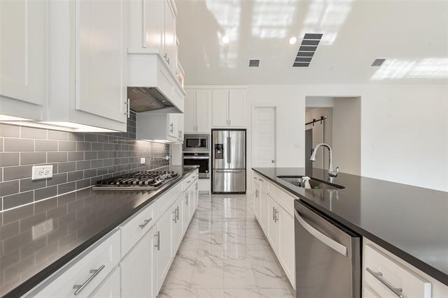 Welcome home! This beautiful property greets you with impressive curb appeal and a large 3-car garage. The entryway and main living area feature gorgeous large ceramic tile flooring throughout, creating a seamless and elegant feel. Inside, you’ll find 3 bedrooms and 3 full bathrooms, plus a spacious bonus room that can be used as an office, extra living room, dining area, or a flexible space that fits your lifestyle. The open-concept layout connects the dining, kitchen, and living areas, perfect for entertaining! The kitchen features a large quartz island, stylish backsplash, and a huge walk-in pantry you will absolutely love. The primary bedroom is oversized and offers a luxurious ensuite bathroom with double vanities, a separate soaking tub, and a walk-in shower. The closet is massive! There’s also a secondary bedroom with its own private ensuite bathroom, perfect for guests or multigenerational living. Step outside to a generously sized backyard with a covered patio, ideal for relaxing or gathering with family and friends. Even the utility room is large, offering plenty of space for storage and organization. Located in Mansfield ISD near major highways, entertainment, and exciting new shopping and dining developments coming to the area—this home truly has it all. Come make this one yours today!
