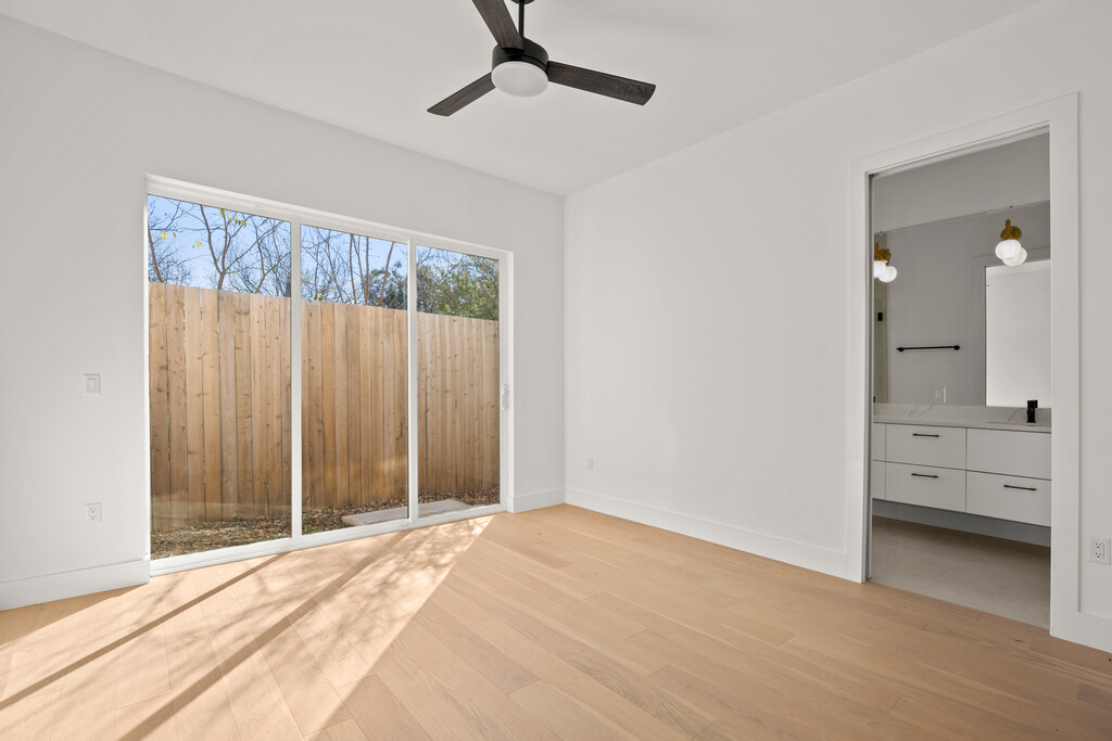 Be the first to experience the contemporary charm of this recently constructed modern farmhouse in the heart of Windsor Park! Boasting a spacious and open floor plan with 10 ft ceilings, this home invites an abundance of natural light that accentuates its modern aesthetic. Extend your entertainment seamlessly outdoors through the sliding backdoor, providing a perfect blend of indoor and outdoor living.The ground floor hosts a luxurious master suite with its own sliding door, offering a private retreat for enjoying morning coffee. Upstairs, two bedrooms and an office/flex space provide versatile living options. The property features an electric driveway gate and garage for added convenience.Situated just around the corner from Mueller, 5 minutes to H-E-B, 10 minutes to Downtown, and less than 15 minutes to Austin-Bergstrom International Airport, this home offers a central location with easy access to run daily errands. Additionally, for those seeking a multi-generational living solution, it's possible to lease #1 as well!