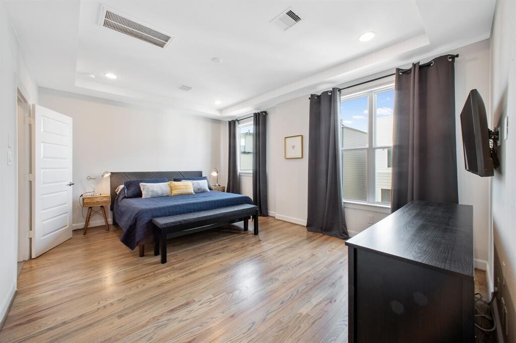 This stunning new townhome near Downtown Houston includes an attached 2-car garage,private patio,and a relaxed rooftop balcony with a fresh city views. Located within a short walk to top restaurants,live music,and sport venues: the Toyota Center,Shell Energy Stadium,House of Blues,Daikin Park,and the Theater District. This modern home includes upscale features like gleaming hardwood floors,high ceilings,and state-of-the-art appliances—including a deluxe washer and dryer,sleek stainless-steel refrigerator,gourmet gas oven,modern dishwasher,and a convenient wine cooler. High efficiency Central HVAC system. As a bonus,the home includes a deluxe pool table and optional furniture. MLS# 31105273