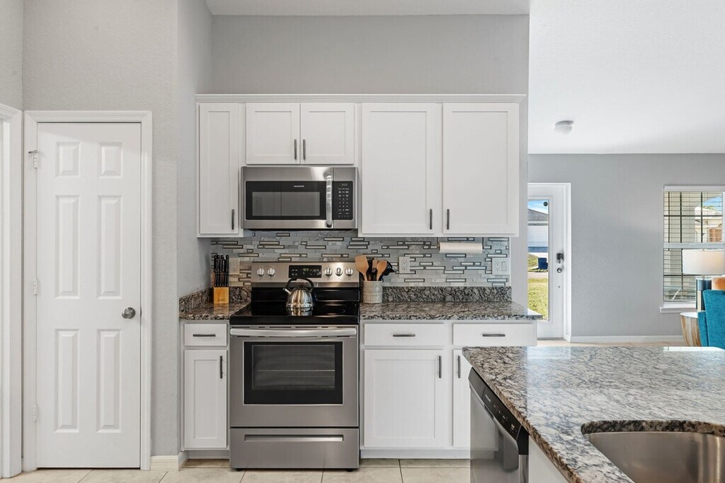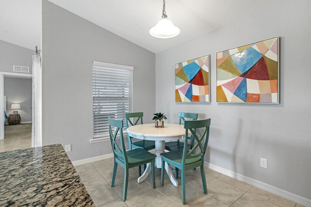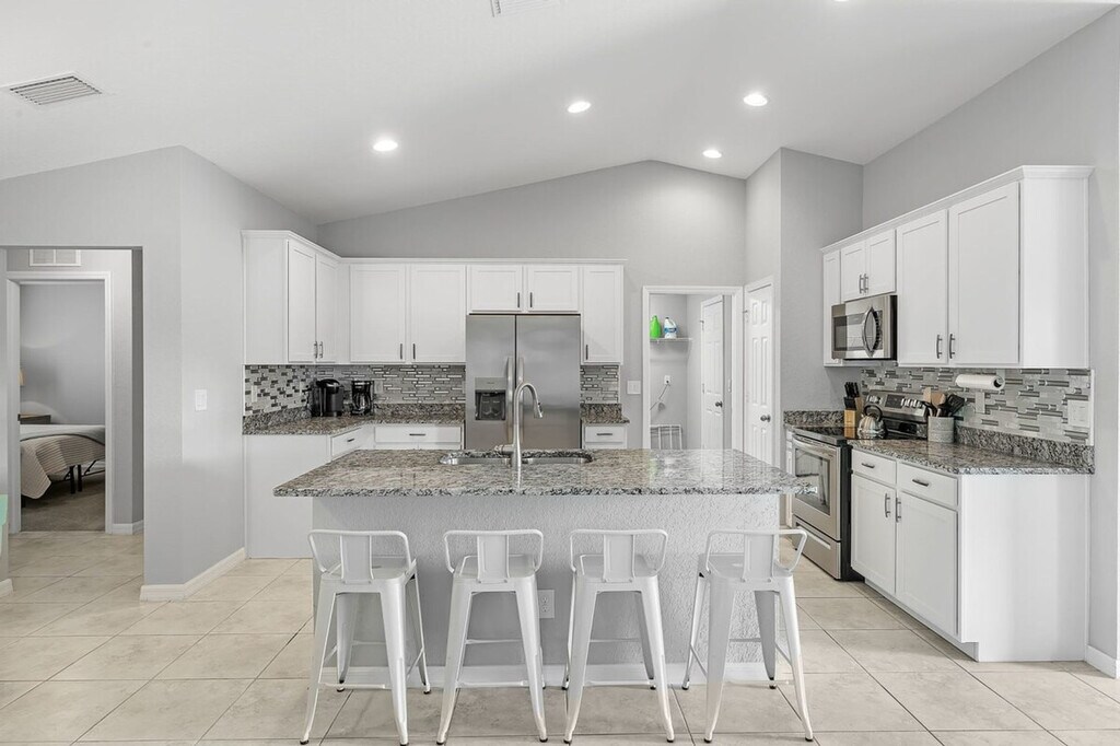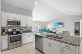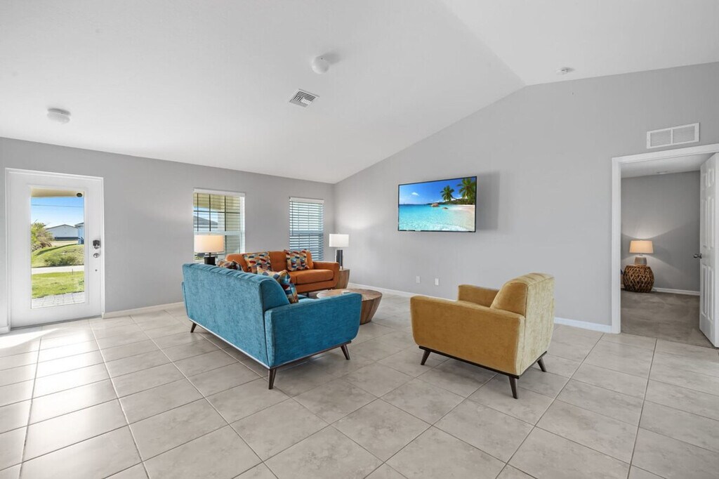Feel at home in "The Cape Escape", a single-level, fully furnished home in Northwest Cape Coral. This home offers 3 bedrooms, 2 full bathrooms, and 1,619 sqft. This home features a fully equipped kitchen with all major appliances, a standard drip coffee maker, and a Keurig coffee maker. Enjoy the convenience of a washer and dryer, central AC and heat, and two smart TVs with Spectrum Cable and streaming app capabilities. The home also includes high-speed internet and a screened-in back lanai. The backyard is an open flat space, perfect for lawn games and relaxing. Up to two dogs are welcome for an additional fee of $100 per pet per booking. Located near Fort Myers, Cape Coral is a vibrant and friendly community with access to boating, fishing, and water sports via its many canals. The home is conveniently located 10 minutes from Coral Oaks Golf Club, 15 minutes from Matlacha, 30 minutes from downtown Cape Coral and Fisherman's Village in Punta Gorda, 35 minutes from downtown Fort Myers, and 60 minutes from Sanibel Island. Quiet hours are between 9:00 PM and 9:00 AM. Smoking, vaping, drugs, events, parties, or large gatherings are not allowed. Guests must be at least 25 years old to book. A Ring Doorbell Camera is on the exterior of the property facing the outside entrance, and a Minut noise monitor system is located inside the property in the kitchen/living room. Please clean up after your pets. [SI]