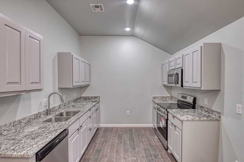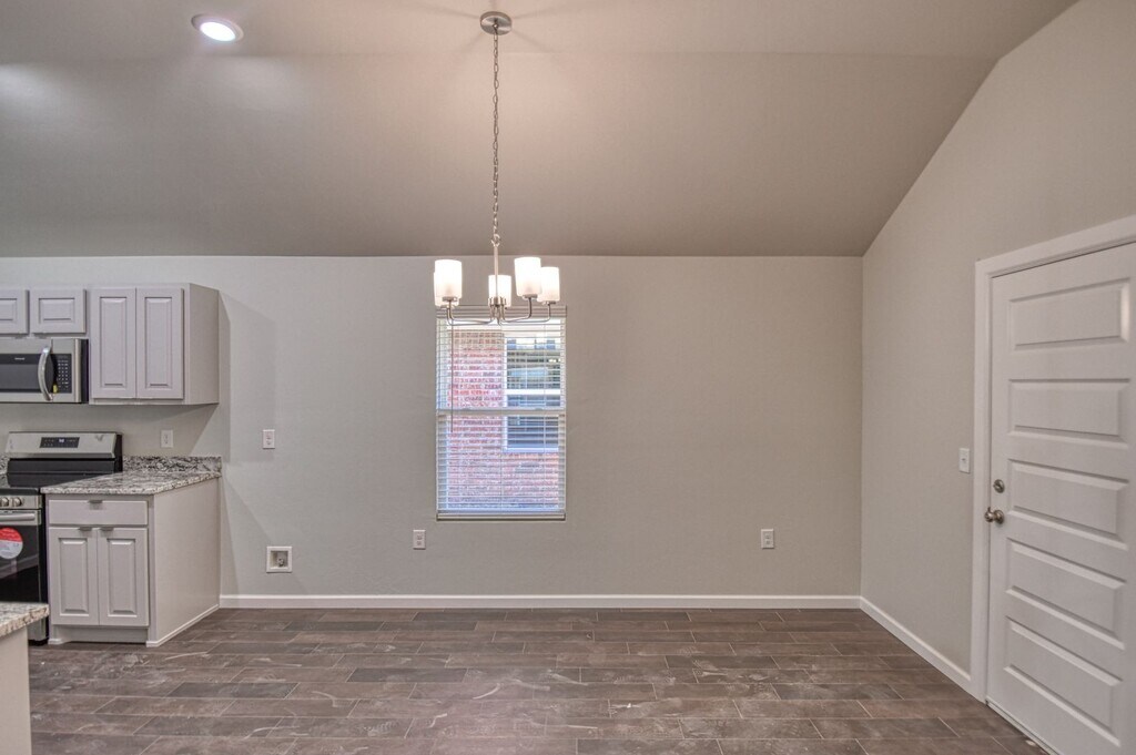 Introducing a brand new construction home in Varenna Landing with three bedroom, two bathrooms and a two car garage with an in ground storm shelter. This modern home features a fully fenced backyard, perfect for outdoor activities and privacy. The interior boasts stained concrete flooring in the common areas and carpet in the bedrooms, a neutral color scheme, and lots of natural light, creating a bright and inviting atmosphere. The kitchen is equipped with stainless steel appliances and granite countertops, perfect for cooking and entertaining. Don't miss out on this opportunity to make this beautiful house your new home. Property comes with an inground storm shelter and lawn care is included! Tenant is responsible for all utilities. OG&E, ONG and City of Norman.