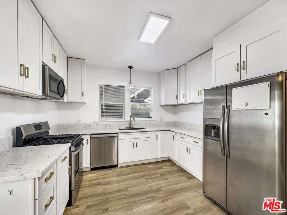 Welcome home to this charming 1bd1ba apartment with all the bells and whistles. Meticulously renovated Craftsman Triplex that exudes timeless charm and modern luxury. This unit is a ground floor unit with ample closet and storage space and a front porch to enjoy the morning sunrise or evening sunset. This warm and captivating home epitomizes sophisticated living in the heart of Los Angeles. The spacious living room captures an abundance of light with an abundance of large windows. This kitchen is a haven of culinary inspiration with its stainless steel appliances, quartz countertops and large dining area. Recent remodel includes smooth ceilings, recess lights, mini-split system for heat and air, windows, kitchen and bathroom. Washer and dryer included and open gated parking for one vehicle. Location central to the Historic West Adams, The Grove, USC, DTLA. Tenant pays water, trash, electric, renters insurance, no smoking. Small pets ok. 1yr lease. MLS# 26638485
