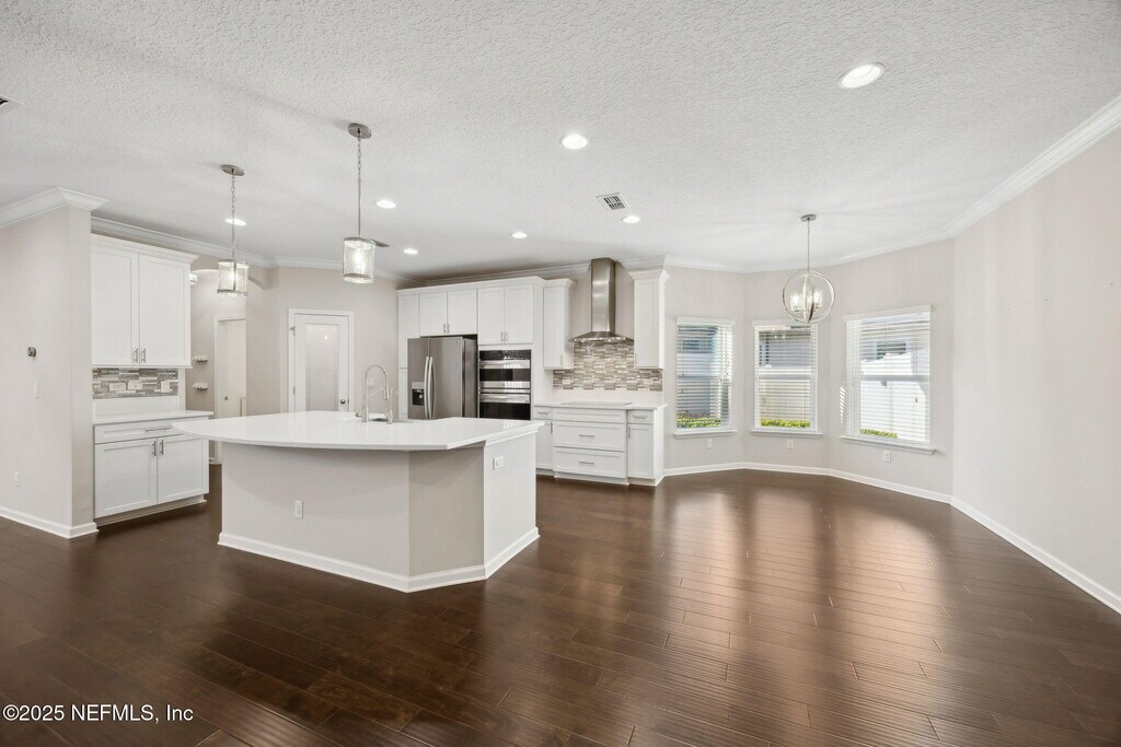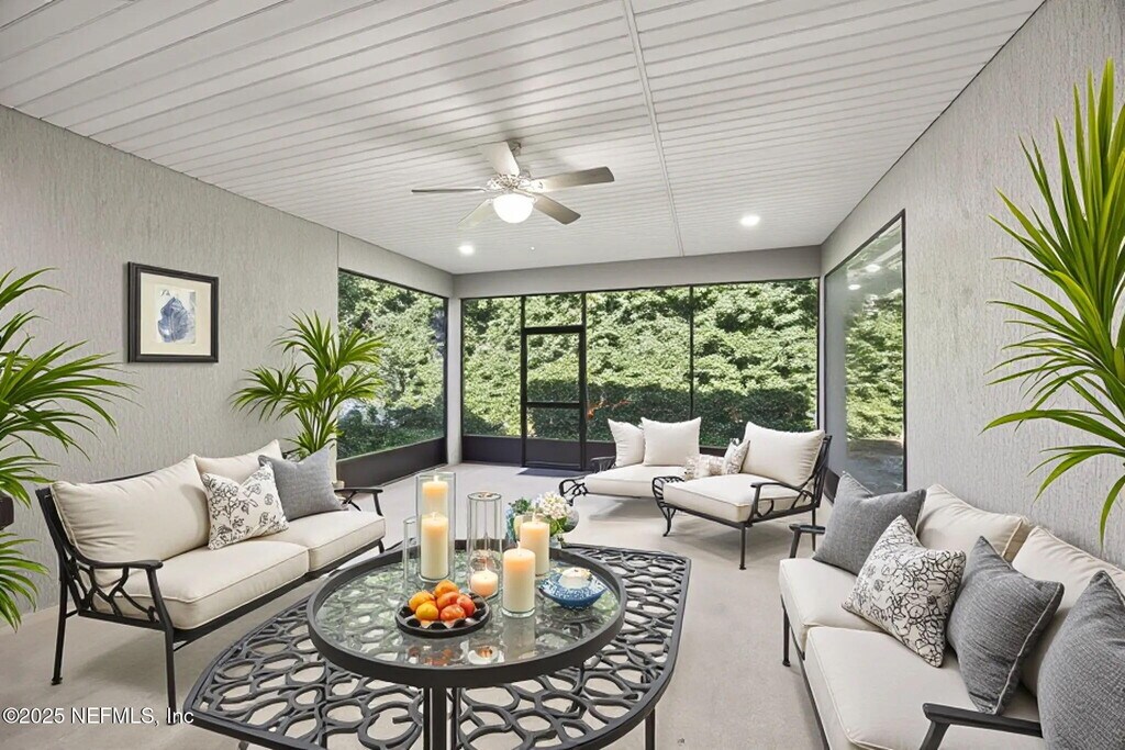 Find elegant yet comfortable living in this expansive,single-level retreat. An open floor plan,soaring trey ceilings,wide plank hardwood floors guide you to spacious rooms. The sleek kitchen shines w/ quartz countertops,stainless steel appliances a convection oven,microwave,cooktop plus generous island for gathering. The living area spills onto a huge,private screened porch (idyllic spot for morning coffee or evening relaxation) extending your living space outdoors. Tranquility awaits in the sprawling primary suite,a luxurious haven including a spa-like bath w/ double vanities,separate soaking tub,shower,water closet,and 'his & her' organized walk-in closets. The three-way split bedroom arrangement ensures privacy for family & guests. A 3 car garage all located at the end of a quiet cul-de-sac. Enjoy exclusive access to the serene St. Johns River for stunning sunsets. This home is a sanctuary of comfort and sophisticated,single-level living. Owner is licensed Realtor MLS# 2117688