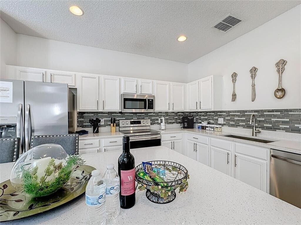 6 Month Lease! Stunning fully furnished 5-bedroom,4.5-bath luxury pool and spa home located in the highly desirable Emerald Island Resort! This beautifully appointed residence features two spacious primary suites—one conveniently located on the first floor and one upstairs—ideal for flexible living or guest accommodations. Deluxe furnishings enhance every space,creating a true turnkey opportunity. Enjoy your private screened-in pool and spa,perfect for relaxing or entertaining,along with a modern kitchen featuring quartz countertops and stainless-steel appliances. The home boasts extensive recent upgrades,including a new roof,two new A/C units,oven,refrigerator,dishwasher,microwave,water heater,pool pump,and ceiling fans. The climate-controlled garage with its own A/C system adds valuable bonus space. The HOA includes lawn care and cable. Emerald Island Resort is a gated community just 3 miles from Disney and less than 20 minutes from SeaWorld and Universal Studios. Resort-style amenities include a community pool,tiki bar,basketball and volleyball courts,fitness center,nature trail,and clubhouse with daily theme-park shuttles. An outstanding opportunity in a premium neighborhood! MLS# O6368259