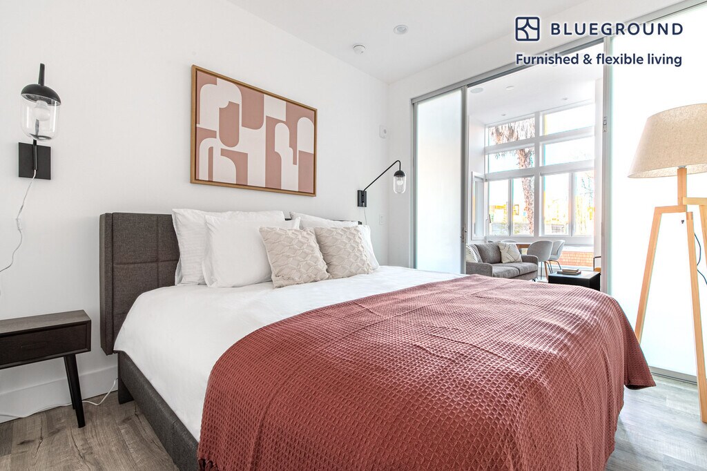 Show up and start living from day one in San Francisco with this lovely one bedroom Blueground loft. You’ll love coming home to this thoughtfully furnished, beautifully designed, and fully equipped SoMa home. (ID #SFO455) The advertised rate of $4,030/month is the lowest available price, based on a 1 month(s) and 29 day(s) stay with a move-in date of November 13, 2025. If you’re looking for a 1-year stay, the rate is $5,370/month. Rates vary depending on the duration of stay, season, and other parameters. For exact pricing and additional pricing components, please visit our website and enter your desired move-in and move-out dates. The rate is applicable when billed upfront; it can be higher if billed in multiple payments. Brokers are welcome to reach out. Were you looking for an unfurnished lease? Try Blueground instead and upgrade from unfurnished to furnished living: - Furnished at rates comparable to unfurnished - No setup or furniture costs - save thousands - Move-in ready - save time, just bring your suitcase Designed with you in mind Thoughtfully designed with bespoke finishes, modern furnishings, and a fully equipped kitchen, you’ll enjoy that “I’m home” feeling with this Blueground loft. Whether you’re lounging in your charming living room streaming the latest and greatest entertainment on the smart TV or premium wireless speaker, or getting some well-earned rest on the superior quality mattress with luxury linens, you’ll fall in love with everything this SoMa loft has to offer. This loft also offers in-loft laundry. Sleeping arrangements King Bed, 70.8in/180cm Amenities Building amenities unique to this one bedroom loft include an on-site: - Dryer - Washing machine Arrival and ongoing support The entire loft is yours to enjoy! Throughout your stay, you’ll have access to our Client Experience team through the Blueground App. You can schedule additional cleanings, submit maintenance requests, and view our neighborhood recommendations with just a few taps. We’ll share all details upon confirmation of your stay. Ideally Located This furnished apartment is located in South of Market, known as SoMa. A trendy, urban district, famous for its excellent art and museum scene. Home to a diverse mix of entrepreneurs and young families, this neighborhood offers hip bars, fine dinings and delicious coffee. Don’t miss the plethora of museums, including a visit to the San Francisco Modern Museum of Art. Baseball lovers frequently visit SoMa, as it is also home to the San Francisco Giants. Other things to note This Blueground loft has flexible lease options, allowing you to book it for one month, a year, or more. Please keep in mind that this is a walk up building. We take great pride in ensuring every photo displayed is shot in our own units with our actual furnishings. That said, we regularly refresh our decor and furniture arrangement, which may differ from what’s pictured. Also note - This apartment is located on a narrow street - There have been reported instances of homeless populations nearby [GO]