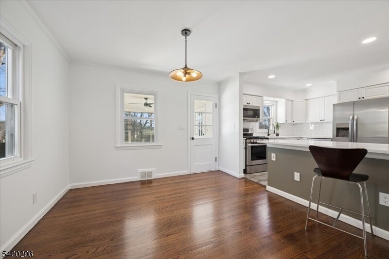 Recently Renovated and ideally located, this 3-bedroom, 2.5 -baths home in Morris Township offers modern comfort just minutes from vibrant Downtown Morristown, its restaurants, shops, entertainment, and the NJ Transit direct train to NYC. Step inside to beautifully refinished hardwood floors and a bright, open living room filled with natural light. The updated eat-in kitchen features stainless steel appliances, including a brand-new 2025 microwave and refrigerator and opens seamlessly to the dining area. Off this space, the oversized sunroom showcases new flooring and beautiful views of the expansive backyard, creating a perfect setting for work, play, or relaxation. Steps up, the spacious primary bedroom enjoys its own updated en-suite bath, while two additional bedrooms share a modern full bath. The ground floor expands your living area with a cozy family/rec-room adjacent to a convenient laundry space and half bath. An attached 1-car garage, extra off-street parking, and a storage shed add convenience. With major highways moments away and all the attractions of Morristown at your doorstep, this home blends style, comfort, and an unbeatable location.