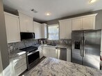 Gated Private Community! Conveniently Located! Spacious 3 Bedroom and 2.5 Bath End Unit Townhome with Spacious open kitchen featuring, Granite Island and countertops, 42" cabinets, upgraded stainless steel appliances including refrigerator, dishwasher, stove and microwave. Open entertaining floor plan, Luxury vinyl hardwood floors on main with fireplace. Separate open dining area, Upper level includes spacious master suite with trey ceiling, spa like master bath with double vanity, separate tub and shower. 2 additional roomy secondary bedrooms, guest bath and hallway laundry closet with washer and dryer. 1 Car Garage. Private fully fenced backyard with patio. Walking distance to shopping and dining.