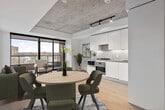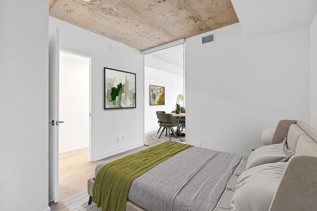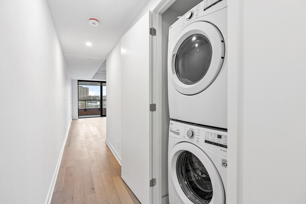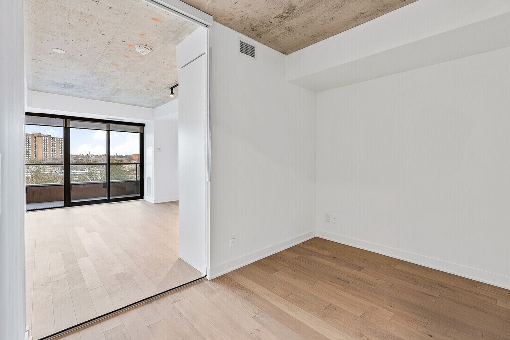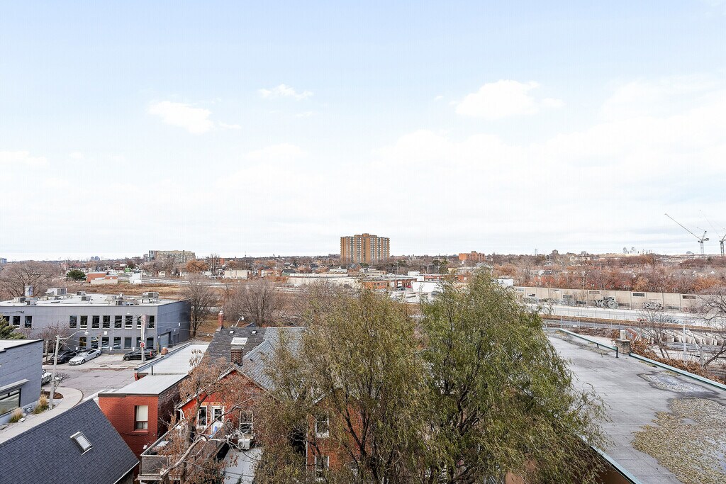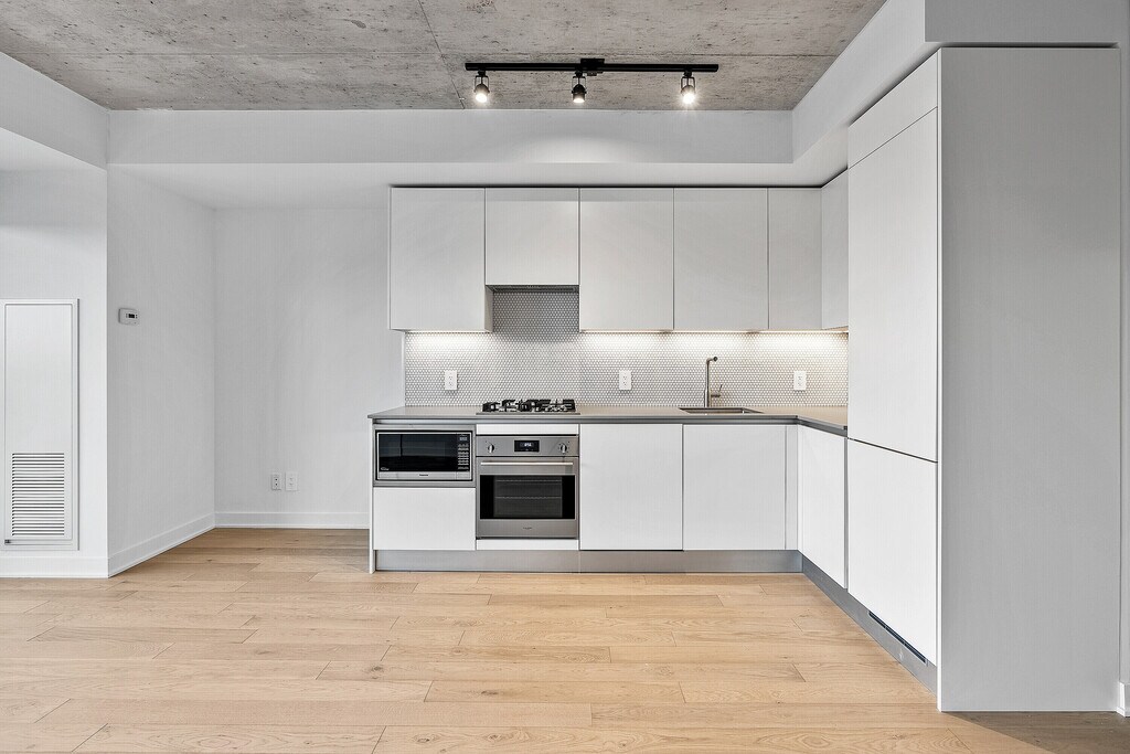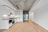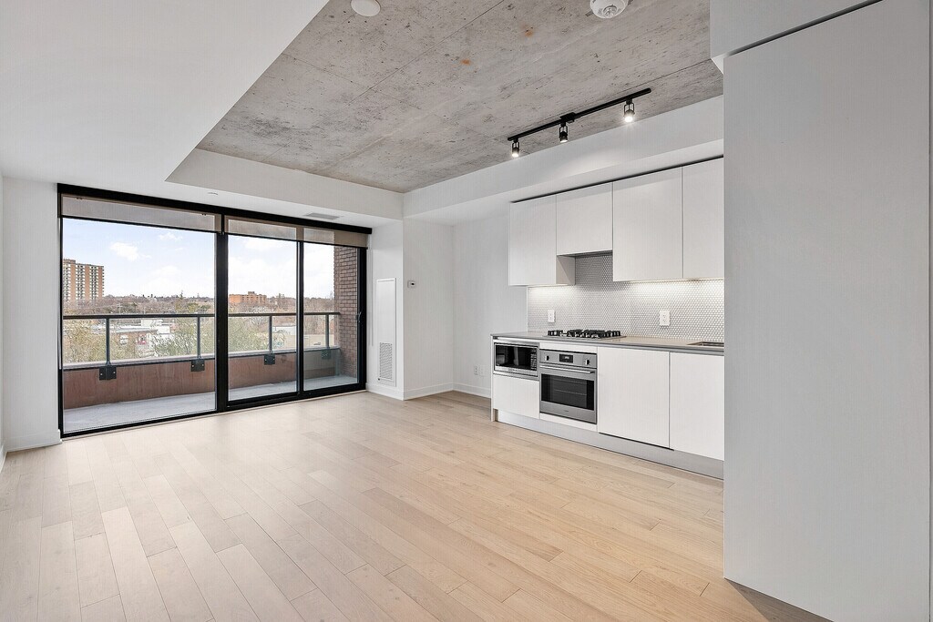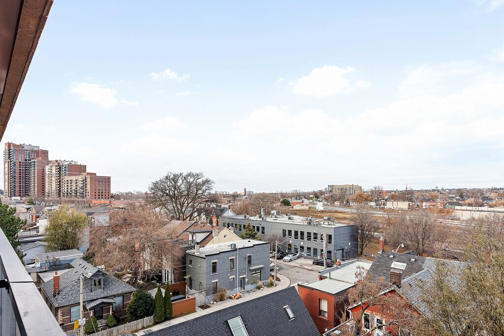 You'll just love the views! Clear vistas are had from the 80 square foot balcony (with gas line) in this wonderful one bedroom condo, just over one year old. You will be the very first to live here! 9-foot high concrete ceilings, upgraded bathroom, Scavolini kitchen with Fulgor appliances (gas cooktop), and light Oak engineered hardwood flooring. The open concept makes it feel much larger than 537 square feet. Huge closet in the bedroom. Large sized stacked washer and dryer. And a storage locker for extra stuff. Junction House is a nearly-new low-rise boutique building designed by the famous architectural firm Superkul, with the most amazing shared workspace in the front lobby, fitness centre on the 2nd floor and a 4000 square foot rooftop terrace with firepit. The Junction is a village within the city and oozes vibrancy and charm. Filled with cafes, restaurants, indie shops, LCBO, breweries, and farmer's market. Blinds installed.