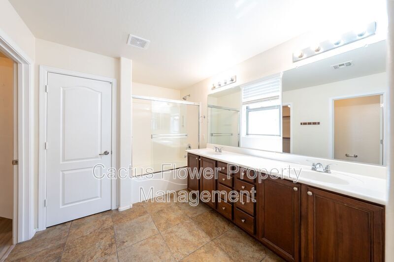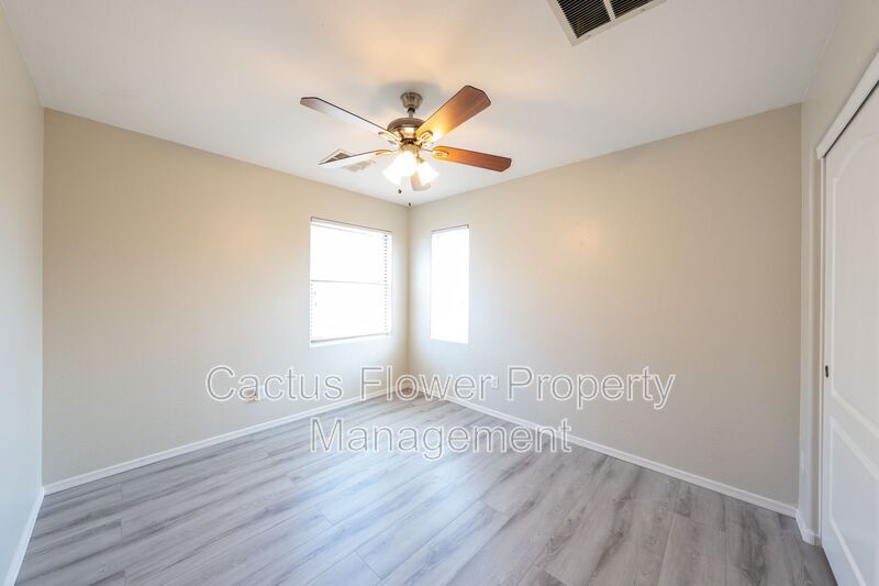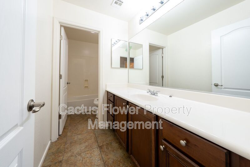 Situated in the heart of Gilbert’s vibrant Lyons Gate community, this beautifully upgraded 4-bedroom, 3-bath home provides unparalleled access to everything you need. You are just minutes away from Epicenter, The Coffee Shop, Joe’s Farm Grill, Salt & Straw, and Air Guitar, as well as Costco, Trader Joe’s, Sprouts, and SanTan Village. Easy access to the 202 freeway ensures that convenience and a desirable lifestyle are right at your fingertips. Inside, the home features a spacious open-concept layout with warm wood-look plank tile flooring throughout the main level. The inviting living and dining areas flow seamlessly into a stylish kitchen complete with white cabinetry, granite countertops, and an oversized walk-in pantry—perfect for daily living and entertaining. A full downstairs bathroom and a flexible office or den (ideal as a fourth bedroom) offer added functionality. Upstairs, brand-new luxury vinyl plank flooring runs throughout—no carpet anywhere. The generous primary suite boasts dual vanities, a private toilet room, sliding glass shower doors, and a massive walk-in closet. Two additional bedrooms, a full guest bath, and a convenient laundry room with washer and dryer round out the upper floor. Outside, enjoy a covered patio and a low-maintenance backyard made for relaxed Arizona living. A two-car garage and full access to Lyons Gate’s amenities—including multiple pools, clubhouse, and playgrounds—make this home the perfect balance of comfort, style, and community. Amenities: community pool, children's playgrnd, biking/walking path