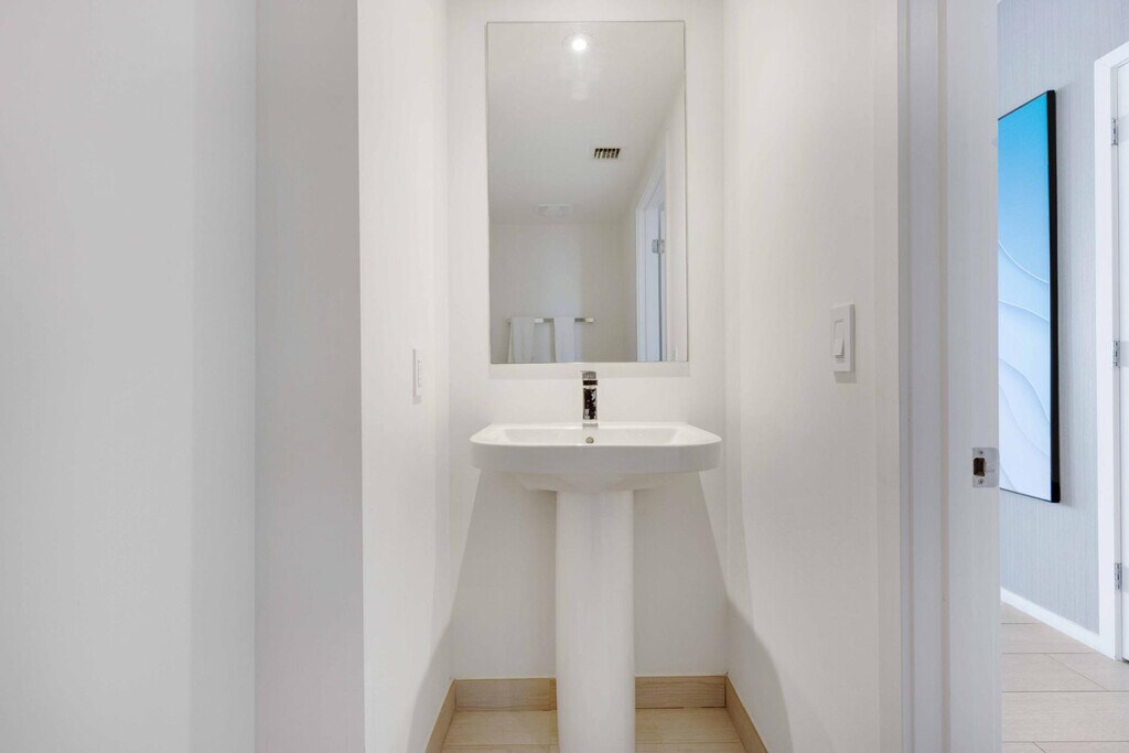 Enjoy this spacious 1-bedroom apartment with amazing views, accommodating up to four guests. The main bedroom features a king-size bed and a private bathroom. There is also a half bathroom in the unit. Floor-to-ceiling glass windows in the living room can accommodate two guests on a queen-sized sofa bed. The apartment includes a fully equipped integrated kitchen with everything you need to make a family meal, as well as a washer and dryer inside the unit, an iron board, and hair dryers. Hyde Beach House applies mandatory resort amenities fees to all reservations. Valet parking is available at $40 plus tax per day, with reduced rates for longer stays. Resort fees are $40 plus tax per day, with discounts for extended stays. The resort amenity fee includes services such as two beach chairs, one umbrella, four beach towels, wireless internet, pool access with towels and chaise lounges, and 24-hour access to a state-of-the-art fitness center. Upon arrival at the resort, the front desk will welcome you and provide an electronic key and all the instructions needed for your stay. A credit card and ID must match the name on the reservation or accompanying guest to check-in. The security deposit will be released immediately upon checkout and may take 3-5 business days to reflect on your account depending on the bank. Effective January 1, 2026, the overnight valet parking rate will increase to $42. The monthly parking rate of $280 will remain unchanged. [SI]