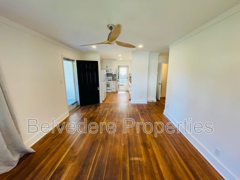 A rare find in this popular neighborhood with a very large master bedroom with bath featuring a barn style door, tile shower with seat bench, lots of closet space. Second bedroom and new hall bath. Sleek looking eat in kitchen with built in seat bench, built in microwave, gas range, dishwasher and refrigerator. Separate laundry room with with washer & dryer. Hardwood floors throughout. Enjoy entertaining on the back deck. Large building behind house with electric ideal for a workshop, art studio or storage. Small dogs under 30 lbs considered. Available Now! Rental requirements: Credit score of 600+, monthly income is 3x the rent, clean background, good rental history. Belvedere Properties is proud to offer deposit-free living to qualified renters through Obligo! Apply at Amenities: fenced backyard, hardwood floors, updated kitchen and bathrooms, storage building