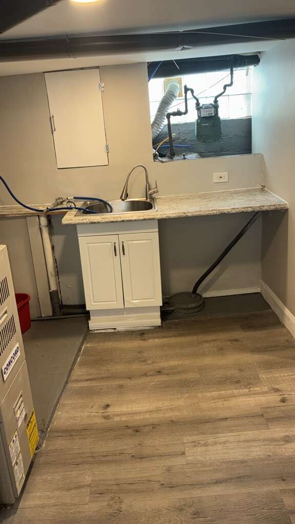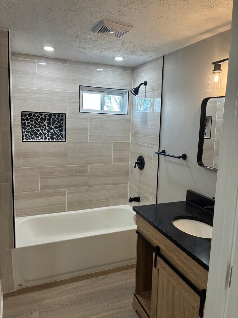 This beautifully newly renovated two-bedroom, one-bathroom home is available for rent at $1,600 per month, with a $1,600 security deposit. The home features a bright, modern interior with updated flooring and recessed lighting throughout. The spacious kitchen has been fully renovated and includes modern cabinetry, updated countertops, a stylish backsplash, and full kitchen appliances. Natural light fills the space through multiple windows, creating a warm and inviting atmosphere. The bathroom has been tastefully updated with contemporary tilework, modern fixtures, and a clean, polished finish. Washer and dryer hookups are available for added convenience. The property also includes a garage, providing secure parking or additional storage space. Tenants are responsible for all utilities as well as yard maintenance. This move-in-ready home offers a fresh, modern feel with thoughtful updates throughout, making it an excellent place to call home.