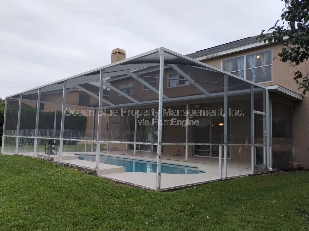 This beautiful large pool home is located in the heart of Wesley Chapel. Upon entering the elegant entryway with flowing travertine flooring, the formal living room and dining room welcomes you home with floor to ceiling windows and gorgeous hardwood floors. The extra-large family room offers a wood burning fireplace with an open concept flow to the gourmet kitchen. Huge sliding glass doors both in the eat- in kitchen area and family room showcasing the beautiful built-in pool with natures' view of the pond for total privacy. The elegant staircase leads to the huge Owner Suite offering an alcove area for sitting area, office area, reading area. Huge separate walk-in closets. The Owners' bathroom offers dual vanity sinks, lots of cabinet space and soaking tub with separate walk-in shower. This home offers a second Owner Suite that includes a huge walk-in closet. A bedroom/office/den located on first floor with storage area and large wall to wall closet. This is a beautifully designed home with top-notch extras for you to enjoy calling home. NOTE: due to recent freeze - vegetation, bushes and hedges will be properly restored upon warmer weather. AMENITIES: * Enclosed lanai Pool Home * Club house amenities By submitting your information on this page you consent to being contacted by the Property Manager and RentEngine via SMS, phone, or email.