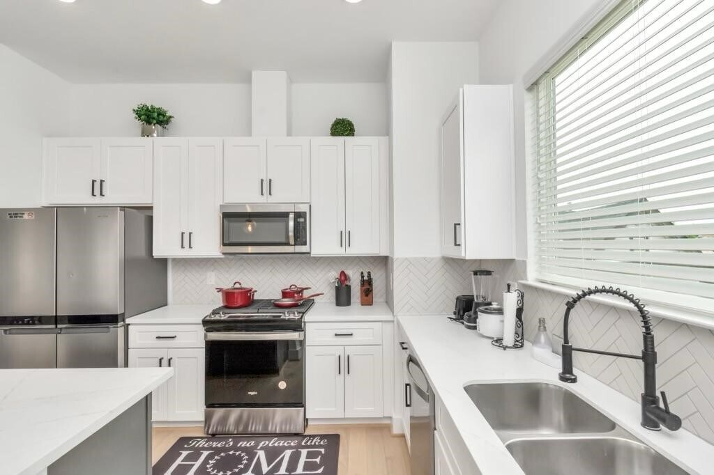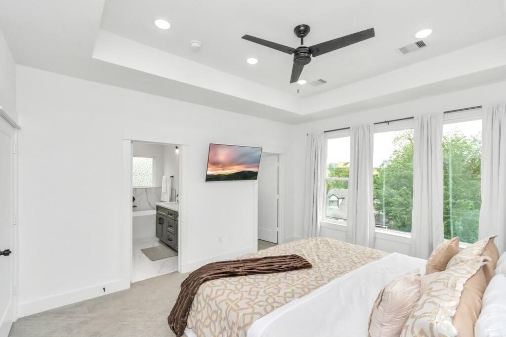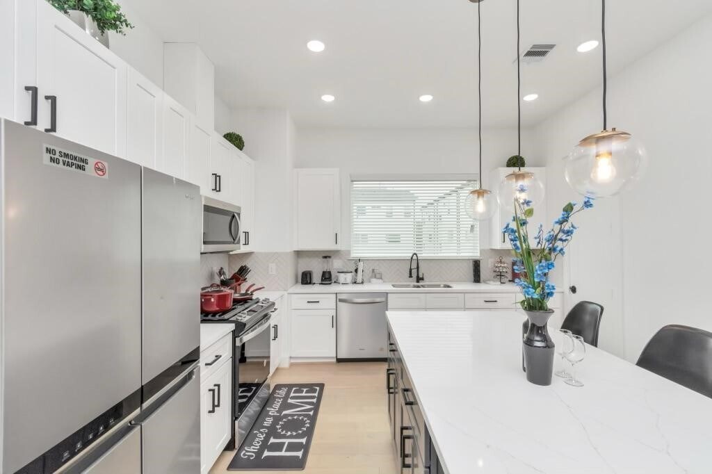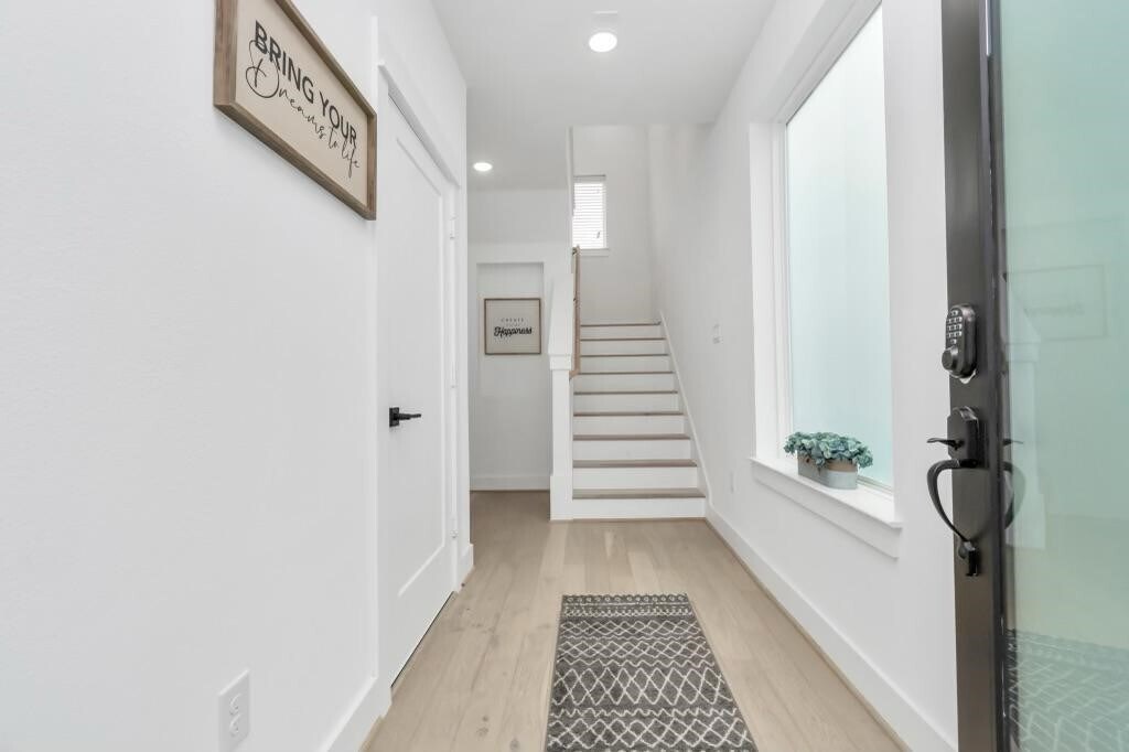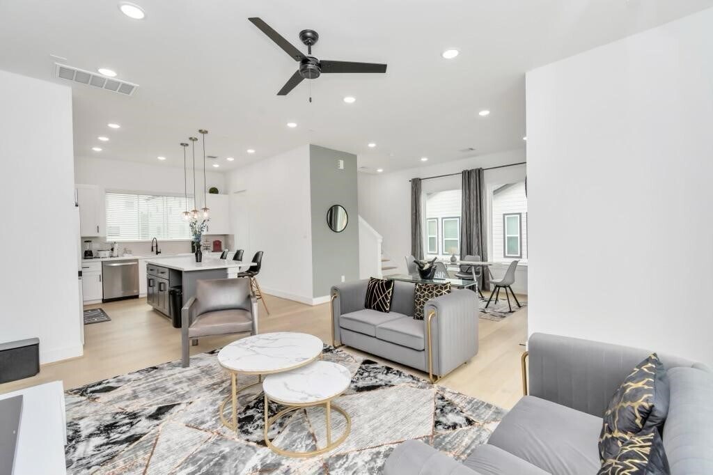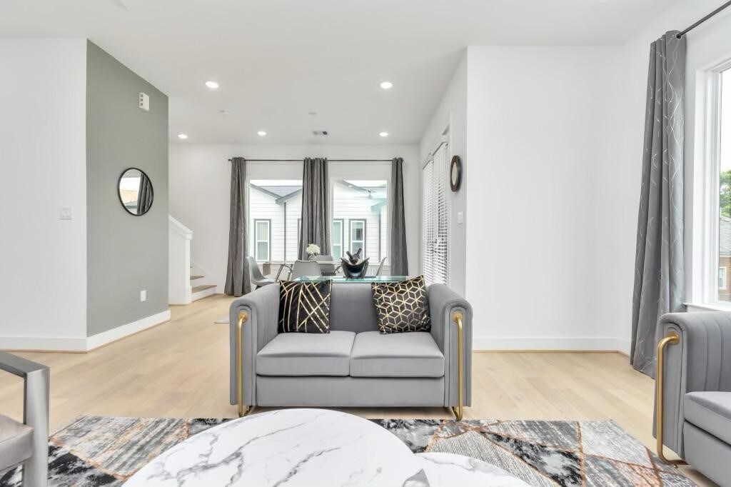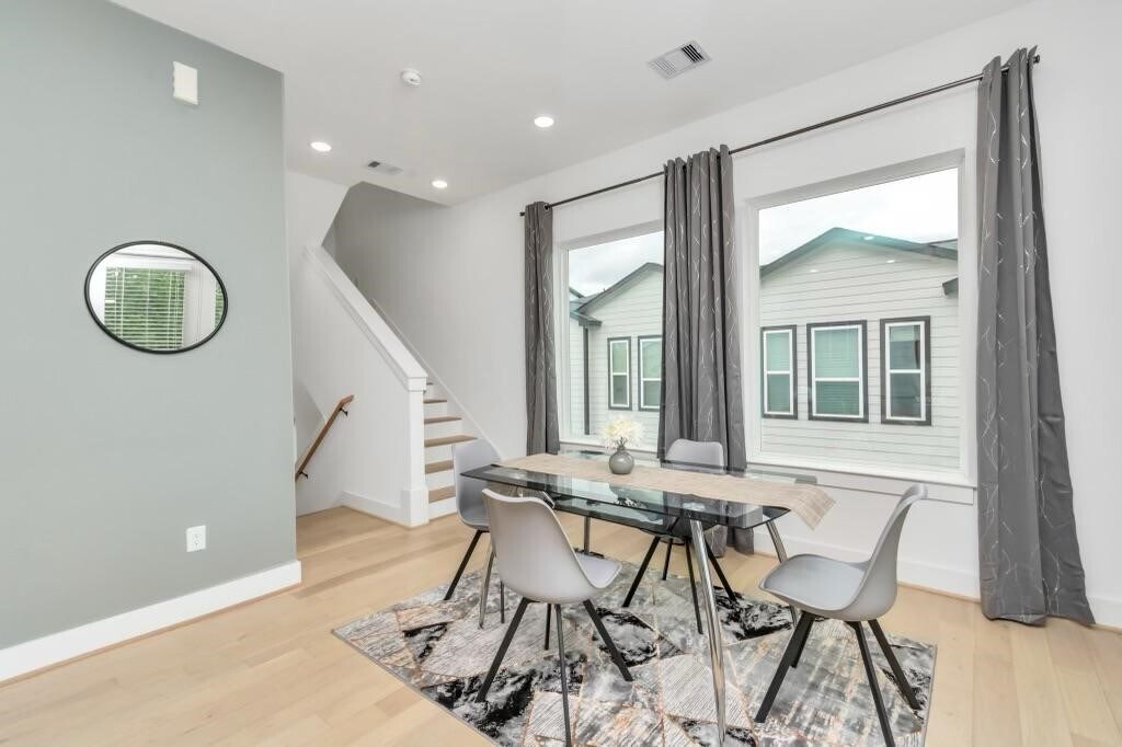 Discover a well furnished 3-story single-family home nestled in the heart of the historic Third Ward/Delano Park area. The exterior showcases a sleek modern design with clean lines,a mix of smooth stucco and horizontal siding,and expansive windows that bring in abundant natural light. The front features a private driveway and a modest,low-maintenance green space. Inside,the home boasts high ceilings,an open-concept living area,and upscale finishes including hardwood floors,quartz countertops,and stainless steel appliances. The second floor includes a spacious kitchen,dining,and living area perfect for entertaining,while the third floor houses a primary suite with a luxurious bathroom and walk-in closet. A private balcony offers city views,and the first floor includes an additional bedroom or flex space. With a clean,urban aesthetic and a convenient location near Downtown,it's ideal for modern city living. NB. just come in with your clothes everything is set. MLS# 74151825