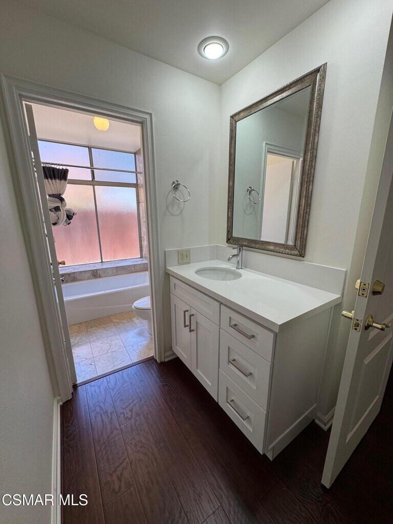Welcome to this beautiful single story home in fabulous Westlake Hills neighborhood! Ideally located at the end of a cul de sac and close to highly acclaimed Westlake Hills Elementary this home has it all. Your spacious backyard features a pool and spa. Off of the kitchen is an expansive side yard, perfect for a patio table with chairs, basketball hoop and year round entertaining. Recent remodel includes an enlarged dining room, new kitchen cabinets and stove top range. Extra large secondary bedrooms with large windows and pull down privacy shades allow ample space for all. Woodlike floors throughout the home and beautiful granite in kitchen counters make this home warm and inviting. Thanks to the many windows, the home is light and bright! Ideally located in the heart of Westlake Village and close to shopping!