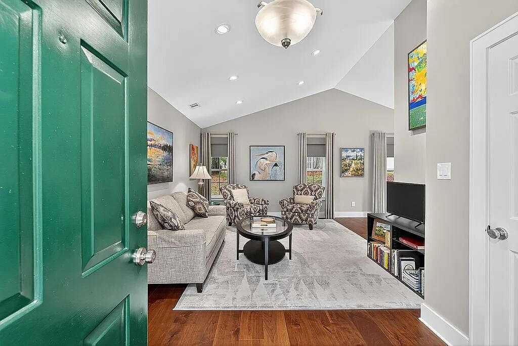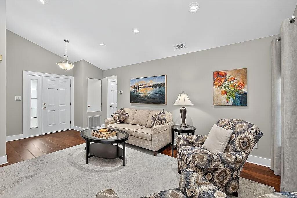 1-bedroom/1-bathroom, 1-level end unit, fee simple townhouse. Masonite hardboard siding; composition architectural shingle roof (2012). Covered entry, walled patio & exterior closet, 2 assigned parking spaces. 798 sqft in the quiet, tree-filled center of Hamlin Park. All electric: central a/c & heat pump (2010), w/h (2018). Vaulted living/dining room ceiling. Huge 5’ x 9’ walk-in closet. 2020 Complete and Total Renovation included… Ceilings refinished: popcorn removed, sheetrock pointed up and painted (Sherwin-Williams Ceiling White). All sheetrock walls pointed up and painted (Sherwin-Williams Repose Gray). All baseboards and moldings replaced with premium 6” trim and painted (Sherwin-Williams Extra White). New Schlage brushed nickel door hardware. New 7.5” engineered vinyl plank (Resista Plus H2O Hardwood/Shaw) in a rich walnut finish throughout. New floor tile in bathroom and laundry closet. New brushed nickel chandeliers in dining room and foyer; new recessed ceiling lighting throughout. Living room wired for ethernet; bedroom wired for ceiling fan & ethernet - all major ISPs available. Hardwired CO/CO2 detector alarm. Walk-in closet, foyer closet & hall closet furnished with Elfa closet systems to maximize storage.
