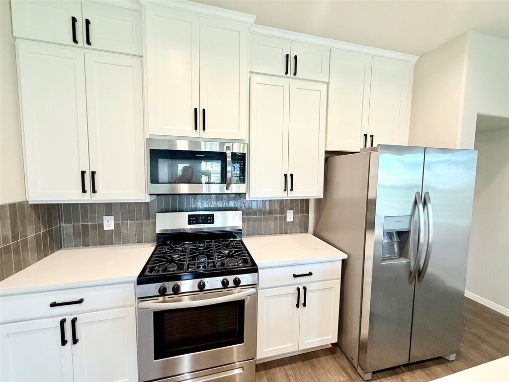 Come see this like new/barely lived in recently built open-concept home with many upgrades. Home is on a quiet street a few doors down from neighborhood playground. The beautiful Kitchen features white shaker cabinets built to ceiling for extra storage,luxury quartz counters,upgraded tile backsplash,extended breakfast bar/island with additional storage cabinets built underneath,large bronze deep single bowl sink,stainless Frigidaire dishwasher,vented microwave & 5-burner gas range! Luxury Vinyl flooring throughout entire home for easy maintenance! Remote control ceiling fans in all rooms and custom wood shutters on all windows. Outside you will find a large patio with a custom Pergola and a fully fenced and landscaped back yard. This Energy Efficient home will save you money and is ready for move in today! LAWN SERVICE,Refrigerator,Washer/dryer,patio furniture and garage shelves included in lease. MLS# 46858729