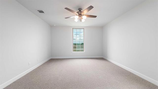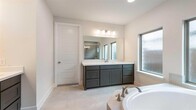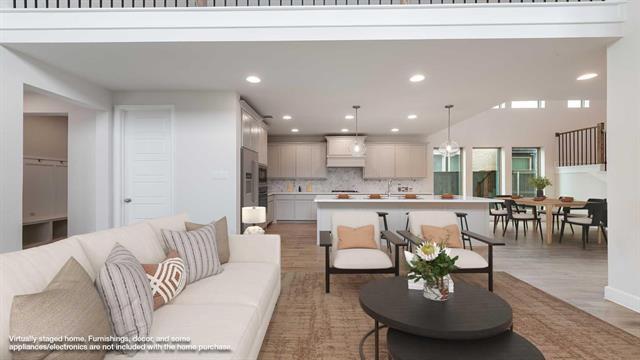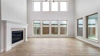 Home office with French doors frames entry. Open floor concept features a dining area with 19-foot ceiling just off the kitchen and family room. Island kitchen with built-in seating space and a corner walk-in pantry. Spacious family room with 19-foot ceiling, wood mantel fireplace and a wall of windows. Secluded primary suite offers a front yard view. Primary bath features dual vanities, linen closet, garden tub, separate glass enclosed shower and a large walk-in closet. Second level boasts a large game room and secondary bedrooms including a guest suite with a full bathroom, walk-in closet and access to a linen closet. Utility room and mud room just off the rear two-car garage. Covered backyard patio.