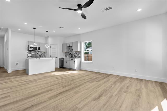 Stunning New Construction in Rapidly Transforming South Dallas – Minutes from Downtown! Discover modern living in one of Dallas' most exciting and revitalized neighborhoods! This beautifully built new construction home sits on an oversized lot in the heart of South Dallas, just minutes from Downtown, Deep Ellum, Fair Park, and some of the city’s most vibrant entertainment districts and restaurants. Inside, you'll find a spacious open-concept layout designed for both comfort and style. The kitchen is adorned with quartz countertops, Stainless steel appliances and solid plywood cabinets, not your typical builder grade ones. The high ceiling and large living area is filled with natural light, thanks to expansive windows that bring the outdoors in. Perfect for entertaining or relaxing, the layout seamlessly connects the living, dining, and kitchen spaces. Whether you're looking for convenience, modern design, or investment in a rapidly appreciating area, this home checks every box. Don't miss your chance to own a piece of South Dallas' exciting transformation! Grass and backyard landscape, staging are AI generated