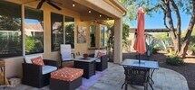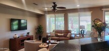Step into the quiet and private back yard with an expanded travertine patio with firepit to enjoy the AZ winters. Come experience resort style living with two community pools,workout facility,pickleball,gold course,restaurant and so much more! Not to mention the sunsets. Some of the best around! Rates are May - December $2500 per month,Jan - April $3500 per month.