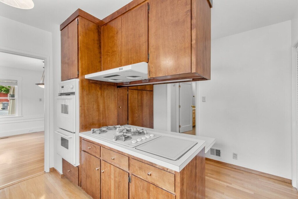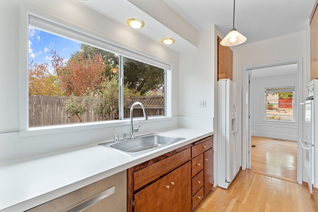 Location is everything! Add in character, space, and lots of natural light. This 1924 home has it all! 1,498 sq ft of beautiful living space. The downstairs features 1 bedroom and 1 bathroom, living room with original built-ins, fireplace, formal dining room, spacious kitchen, and laundry room. Upstairs features the master bedroom, the 3rd bedroom, and 2nd bathroom. Beautiful hardwood floors, and fresh paint throughout. Forced heat and A/C! Workshop/garage for storage and all of those wonderful projects. Large private fenced yard where pets are welcome. Close to Farmer Joe's, La Farine, and Peet's Coffee. Garbage and gardener included. Good credit and a score of 700 a must. Welcome home!