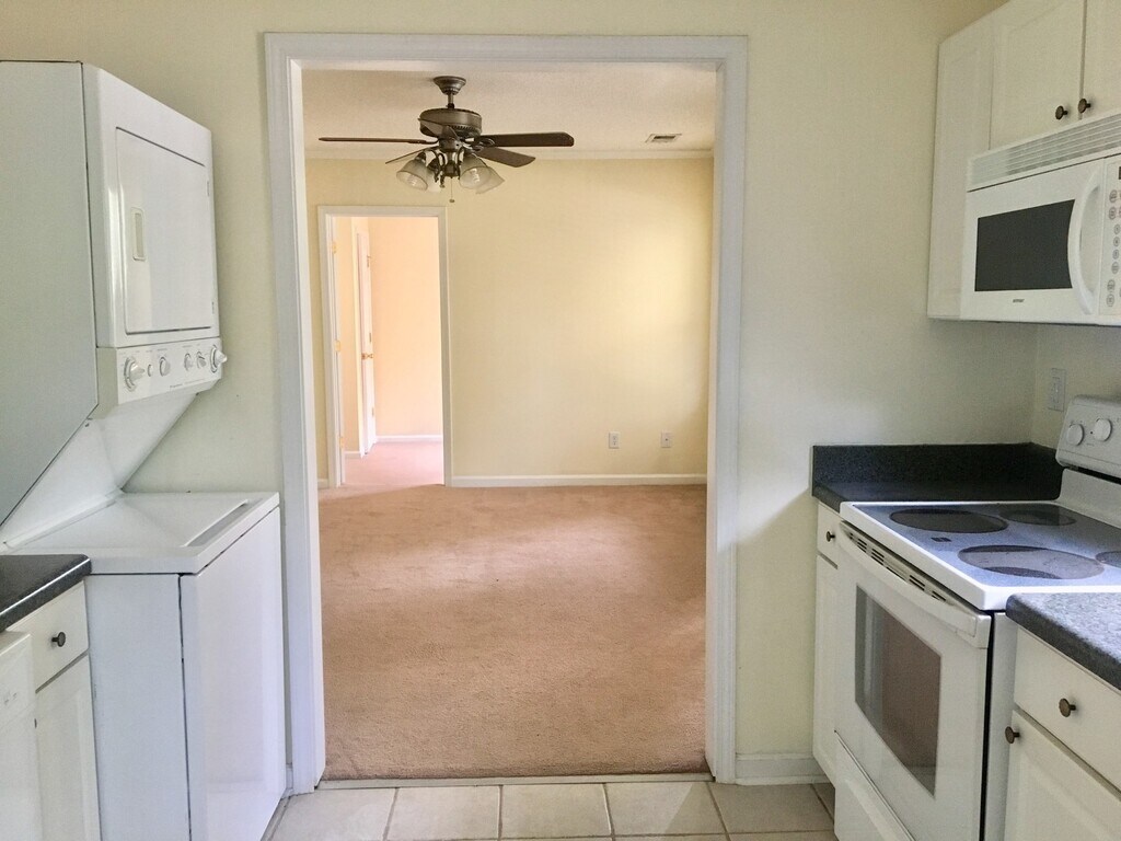 Welcome to Rosewood in Columbia, SC — a three-bedroom, one-bath home featuring a galley kitchen and carpeted living areas. The layout includes ceiling fans and central heating and air for year-round comfort, plus a stacked washer and dryer for convenient laundry inside the unit. Step outside to a balcony/porch and a large backyard that provides outdoor space for relaxation or activities. Rosewood offers practical living with straightforward amenities in a convenient Columbia location. Convenient to USC, Midlands Tech and Owens Field.