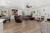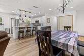 Welcome to your Gainesville getaway, a bright, open-concept 3-bedroom home designed for comfort, convenience, and relaxation. Located in a quiet, family-friendly neighborhood, feel at home in this property that offers all the essentials for a stress-free stay. Step inside to a spacious living area filled with natural light, modern furnishings, and wood-style flooring throughout. The open floor plan connects the living room, dining space, and fully equipped kitchen, creating an ideal setting for gathering, dining, or working remotely. The kitchen features stainless steel appliances, a large island with seating for four, and everything you need to prepare meals, including cookware, utensils, and a coffee maker. Additional features include high-speed Wi-Fi, a smart TV with streaming access, and in-home laundry with a full-size washer and dryer. The fenced-in backyard is private and pet-friendly, offering plenty of room for outdoor relaxation. Driveway parking is available for multiple vehicles. You’ll love the peaceful setting just minutes from the University of Florida, Shands Hospital, downtown Gainesville, and local parks and restaurants. 24/7 guest support is available for any needs during your stay. Includes a workspace in the primary bedroom and a desk in the second bedroom. [SI]