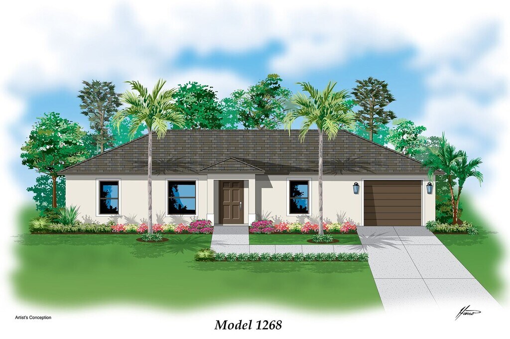 Welcome to your dream home in Lehigh Acres, FL! This BRAND NEW 3B/2B/1 CAR GARAGE is a gem in SW Lehigh Acres. The house boasts an eat-in kitchen with plenty of cabinets, a pantry, granite counters, and stainless steel appliances. The all-tile floors throughout the house add a touch of elegance and ease of maintenance. The split floorplan offers privacy and convenience, with the primary bedroom featuring an en-suite with dual vanities and a large tiled shower. The property is pet-friendly and move-in ready, perfect for creating new memories. The house is built on a large quarter acre corner lot, with a spacious backyard and a covered rear lanai, perfect for outdoor activities. The one-car garage is oversized, providing ample storage space and includes a washer and dryer hook-up. The house is equipped with storm protection-impact windows for added safety. Located close to downtown Lehigh and SR 82, and within proximity to all amenities in Lehigh Acres, this home offers a great location advantage. This gorgeous single-family home is one of the lowest-priced new constructions in the area. Don't miss this opportunity, SEE IT TODAY!