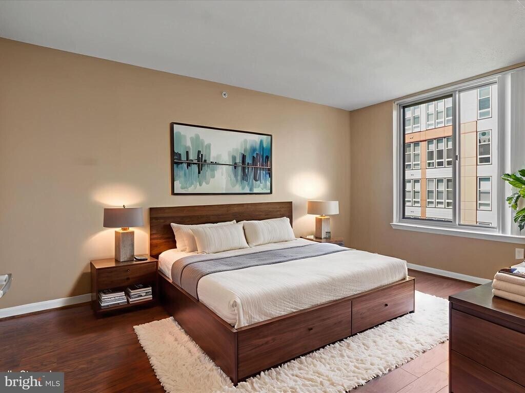 Welcome home to this spacious 2 bed, 2 bath condo with a desirable location. Walk to Metro, Harris teeter, and other shops right around the corner. The condo has very spacious bathrooms and bedrooms, Walk in closet in primary suite. Washer and Dryer in unit. Ceramic tile in baths and kitchen with engineered wood in the rest of the condo. Granite countertops in the kitchen. The amenities include rooftop pool, meeting room, party room, business center and fitness center all in the building. It includes 2 assigned parking spaces in the parking garage attached. ** This great condo is for sale also***