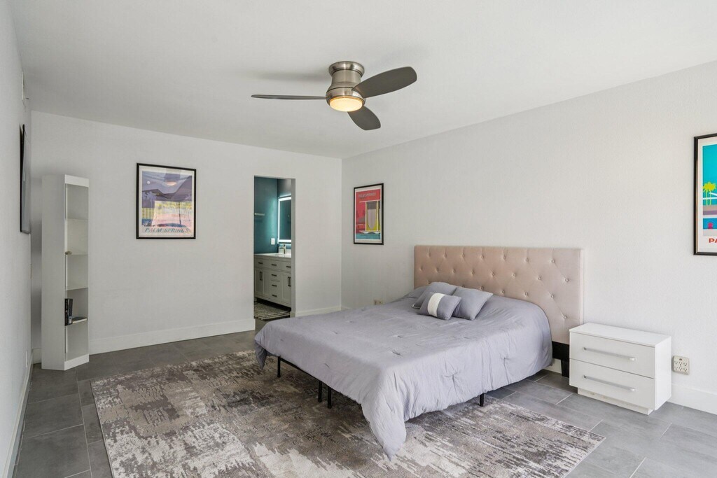 Welcome to one of the best townhomes in South Palm Springs,offering breathtaking views from both primary suites and the main living areas. This beautifully designed residence blends a timeless mid-century aesthetic with modern amenities,creating a home that is both stylish and highly functional. The two-bedroom,three-bath layout includes three private patios,ideal for enjoying morning sunrises,evening cocktails,and expansive mountain and views. The interior is completely move-in ready,featuring elegant tile flooring throughout,a spacious open-concept living and dining area,and a thoughtfully updated kitchen equipped with quartz countertops,sleek modern cabinetry,stainless steel appliances,and breakfast nook with a wow factor! An added bonus is the convient guest powder room on the main level. Upstairs,two well-appointed primary suites each offering spa-inspired ensuite bathrooms with multi-jet shower systems. The main suite features a generous walk-in closet and dual shower,while the second suite opens to a private terrace overlooking scenic fairways and mountain views. Both suites have been recently refreshed with new paint,modern lighting,and refined designer details. One of only ten residences,this home provides access to a saltwater pool and tennis courts that feel private and exclusive without the responsibility of maintenance. Situated on fee simple land with no land lease,located just minutes from downtown Palm Springs and steps from premier hiking trails,this exceptional home offers the best of desert living. Viewing this property in person is a must to fully appreciate its quality,setting,and lifestyle. MLS # 219145247