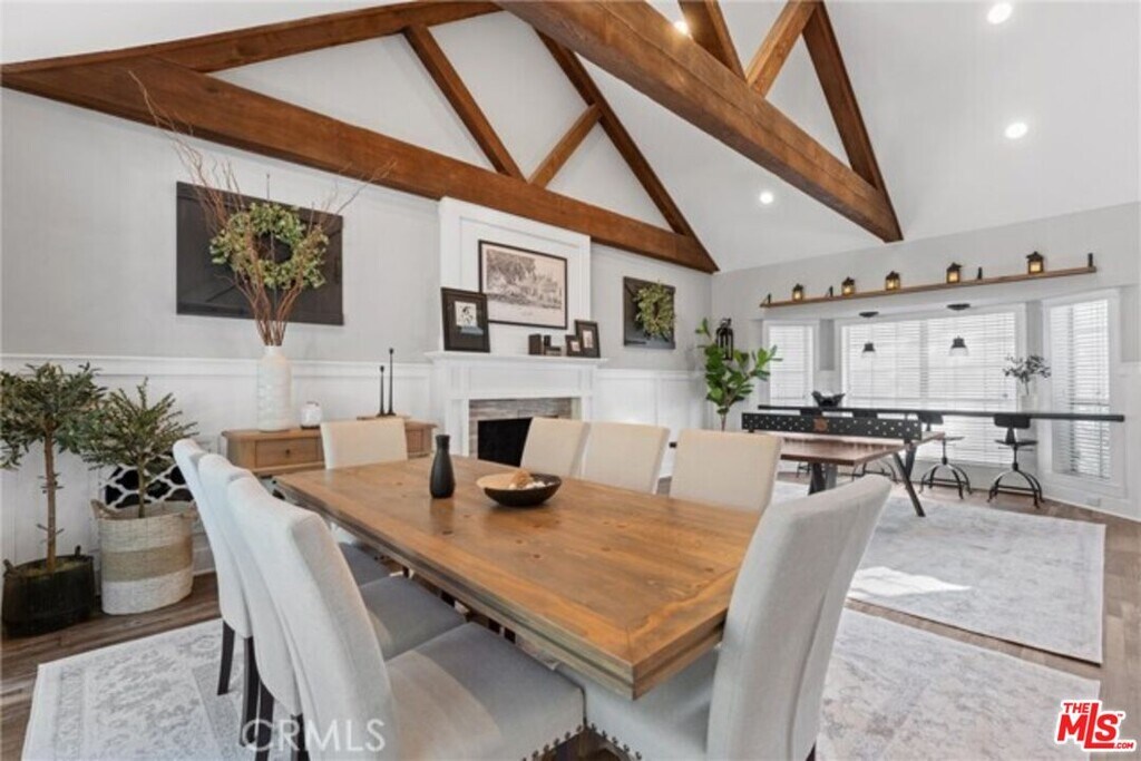 This beautifully renovated custom home showcases striking architectural elements and a one-of-a-kind charm that truly distinguishes it. From the moment you arrive, you're welcomed by an impressive front yard with mature trees, lush landscaping, setting a warm and inviting tone. Step inside to discover a home rich in character and thoughtful design. The spacious living room features soaring vaulted ceilings and exposed beams, creating an airy, elegant feel. On the main level, you'll find a versatile fourth bedroomcurrently used as an officealongside a full bathroom. The kitchen is both stylish and functional, offering double ovens, generous counter space, and a built-in nook with custom cabinetry. The family room is perfect for gatherings, complete with fireplaces and a wet bar. Sliding seamlessly to the outdoor patio, the space extends into a private backyard retreat featuring a relaxing jacuzzi. Upstairs, a charming loft-style reading nook overlooks the living room, adding a cozy yet sophisticated touch. The highlight of the home is the luxurious primary suite, accessed through a custom-molded hallway. With vaulted ceilings, its own fireplace, and a fully appointed bathroom, this space offers both comfort and elegance. MLS# 26760039