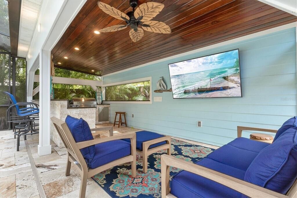 Welcome to Casa Azul,the ideal Sarasota vacation home in Paver Park close to Downtown,Lido Beach & Siesta Key. Featuring 3 luxurious bedrooms & 2 well appointed bathrooms including an en suite in the Master. This home can comfortably accommodate groups of 6 w/ an 8 person max. Noteworthy features include a heated pebble pool & spa,outdoor kitchen with 4 burner grill & outdoor fridge,fully fenced yard,outdoor shower,open concept designer kitchen & living room,High speed wifi & streaming. This house is South facing so there is good natural light throughout the day. The living space is open to the kitchen and dining areas so conversation is easy for groups occupying all spaces. All appliances and furnishings are brand new. There are three bedrooms plus a pullout queen sleeper in the living room. The bed configuration is as follows: Bedroom 1: Queen bed with two nightstands and a dresser Bedroom 2 (Located off of the dining area): 2 twin beds with a nightstand,dresser,and dedicated work space Master Bedroom: King bed with two nightstands and a dresser Living Room: Pullout queen sleeper with linens in the closet The dining area is well appointed and seats 6 There is a laundry room off of the kitchen with full size washer and dryer. This is also the location of the electric panel and hot water heater. The outdoor space is extremely functional with a gorgeous heated pebble pool and spa,a travertine pool deck with seating for 4,an outdoor kitchen with 4 burner Bull propane grill,mini fridge,ample countertop space for prep,4 bar stools for meals and a separate seating area under cover for 4 more. There is a private outdoor shower for guests use as well in addition to the two interior bathrooms. The backyard is fully fenced so no need to worry about your dog getting out. MLS# A4543872