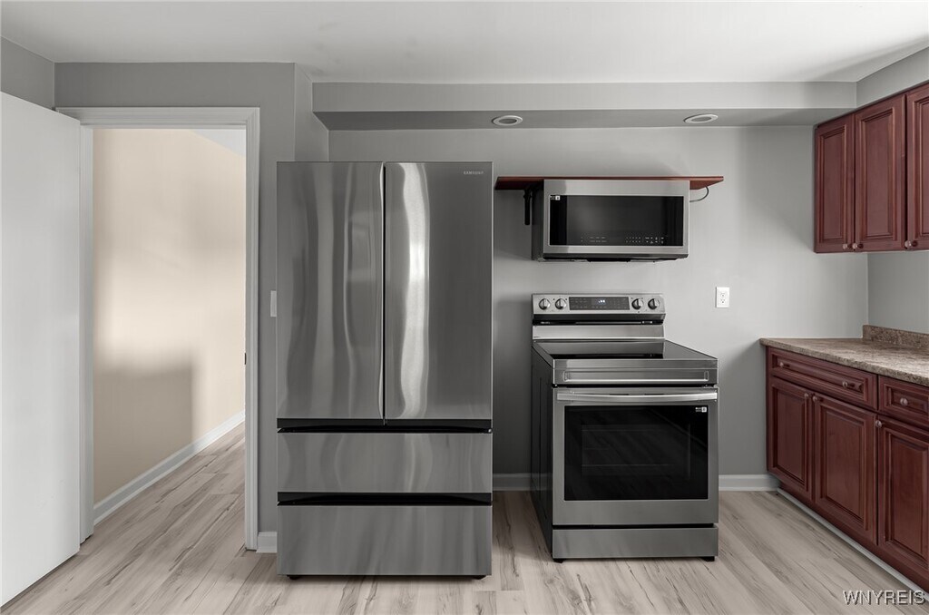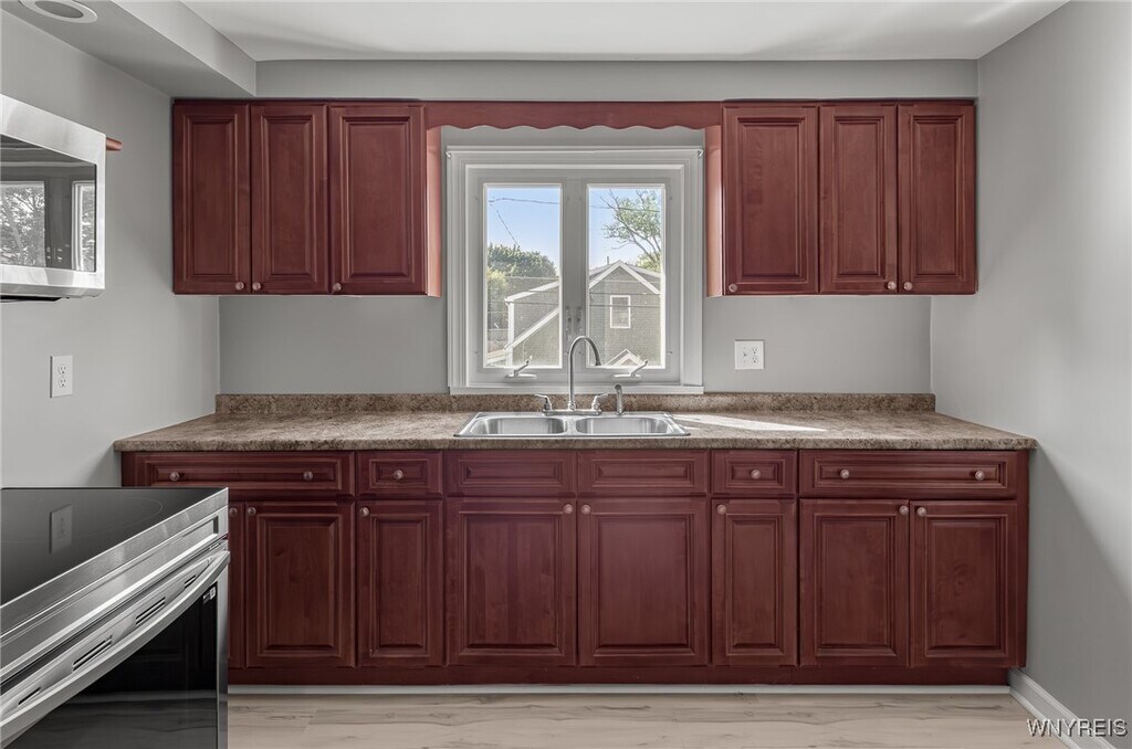 Step into refined living with this 2-bedroom,1-bath upper apartment in North Tonawanda. Offering 1,750 Square feet of beautifully updated space,this fully furnished residence is designed for those who appreciate exclusive,high-end living - Enter through your private entrance with the convenience of two off street parking spaces. The expansive kitchen has been fully updated,complete with stainless steel refrigerator,stove,microwave and plenty of cabinetry. The remodeled bathroom and cedar walk-in closet elevate the everyday experience. Additional highlights include: fully furnished - move in ready,In-unit washer & dryer,Luxury laminate flooring throughout,updated window treatments and fresh modern paint. High-end finishes for a polished look and feel. Enjoy a lifestyle of comfort in a pristine space designed for convenience and sophistication. Available immediately. 1 year lease,No Pets. Application through Rent Spree.