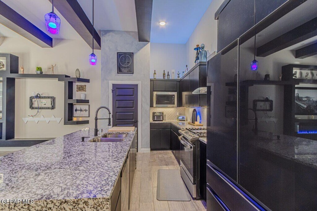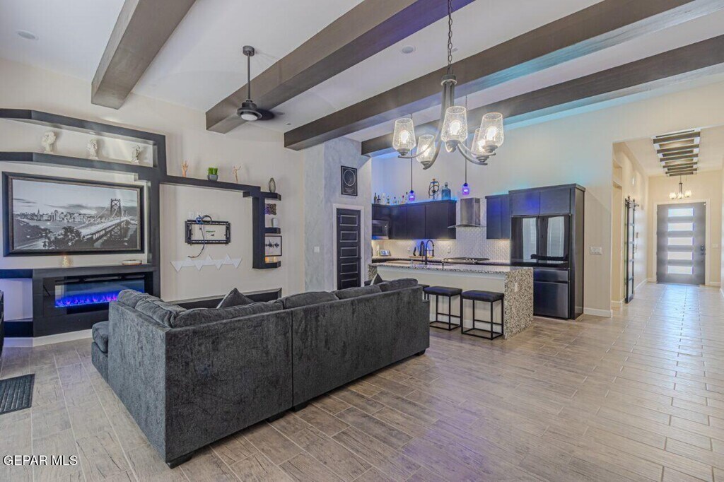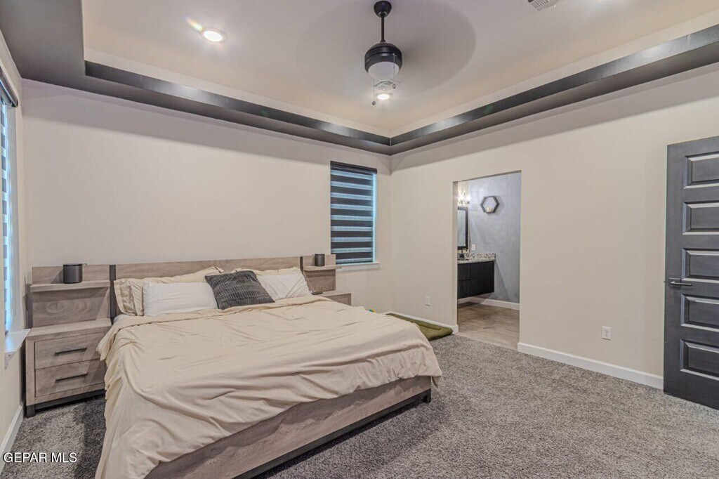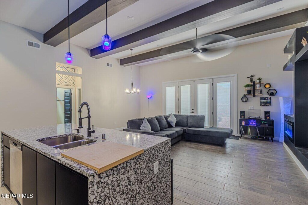 Step into this stylish and modern 4-bedroom,2.5-bath home built in 2022. The open-concept layout features sleek finishes throughout,including granite countertops in the kitchen and bathrooms. The kitchen is a showstopper with a large island that seats several,a beautiful backsplash,and upgraded stainless steel appliances with a modern range hood. The spacious primary suite offers above-mood lighting,a double vanity with granite countertops,floating cabinetry,and an oversized walk-in shower with stunning tile work. All bedrooms include ceiling fans for comfort,and the home is filled with natural light and modern design touches.