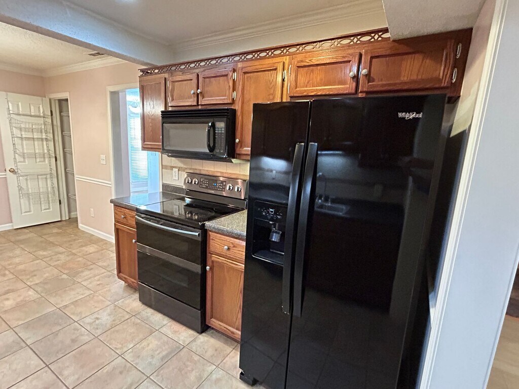 Two-story townhome at Oxford Lake with 3 bedrooms and 2.5 baths. Property main level features hard surface flooring, spacious eat-in kitchen with five burner, smooth-top range, side-by-side fridge, dishwasher and pantry, very large family space with dining area and gas log fireplace, half bath, large laundry room with utility sink and built-in ironing board. Family space opens on to screened in porch with adjacent patio and very small privacy fenced lawn, Single car garage with automatic opener. Upstairs features 3 bedrooms & 2 baths, including large master suite with two separate vanities and large walk-in closet. Gas heat and gas hot water. No Section 8. Owner must approve all pets, no pets over 30 lbs. apx 2 miles to I 20.