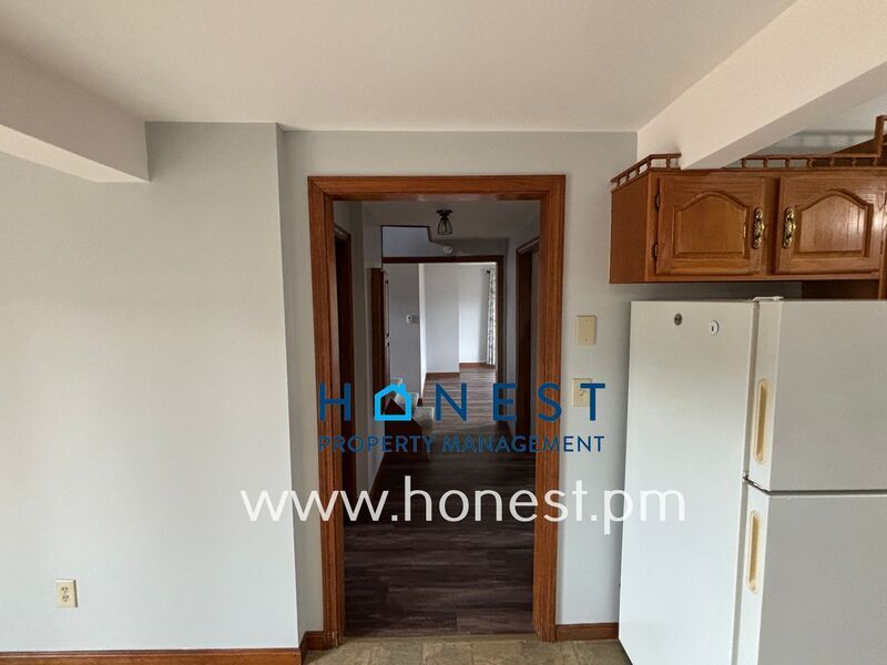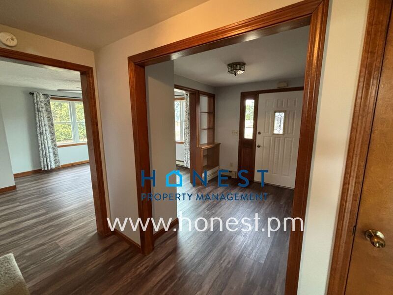 2 bed + Office, 1 bath single family home in Lewiston available now! Situated on 3 acres of land in a quiet neighborhood, this home offers a private setting with a large deck overlooking the yard and expansive views of the surrounding woods. The home features multiple spacious living areas with a large picture window overlooking the front yard and several additional bonus rooms/areas throughout the home included a separate office or possibly 3rd bedroom. The kitchen and dining area offer ample cabinet space and direct access to the oversized 2-car garage. A full bathroom is centrally located in the home. The daylight basement with W/D provides additional space for storage or other uses. Appliances include: Refrigerator, Stove/Oven, Dishwasher, Washer/Dryer Tenant is responsible for: Electricity, Oil (Heat, Hot Water), Water/Sewer, Landscaping, Snow Removal, Trash Removal (weekly town pickup) First months rent and 1x security deposit are due at signing. Second security deposit is due within 90 days of signing. Second security deposit may be used as last month’s rent upon move out. No smoking or vaping. Small pets negotiable with approval. Amenities: garage, washer/dryer, deck, diswasher, basement, ceiling fan