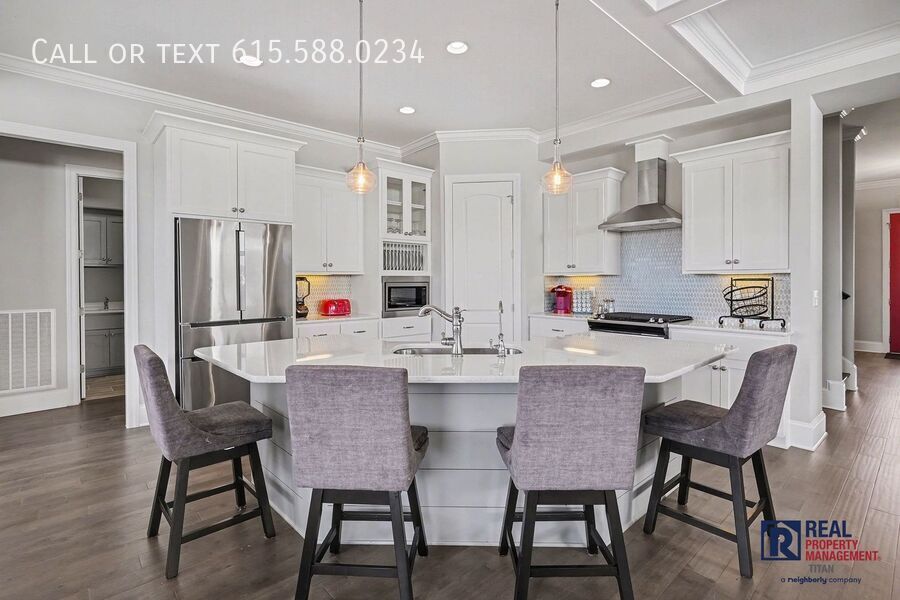 Welcome home to executive living at its finest in The Highlands of Ladd Park. This impressive 6 bedroom, 5 bathroom residence offers 4,300 square feet of beautifully designed living space, featuring scenic views and all the creature comforts of home you would expect. Thoughtfully outfitted from top to bottom, this home is truly move in ready...just bring your suitcase. This home comes fully furnished, including all linens, with a fully outfitted kitchen ready for everything from quick breakfasts to elegant dinners. Flat screen TVs are placed throughout for easy entertaining and everyday comfort. Downstairs, the finished basement is designed for fun and relaxation. Enjoy a pool table, dart board, PlayStation, and a wine cooler, creating the perfect space for hosting guests or unwinding after a long day. Modern conveniences and peace of mind are built in, including a Ring Security System and a whole home water softener. Every detail has been considered to support a comfortable, executive lifestyle. Located in the highly sought after Highlands of Ladd Park, this home combines upscale living with scenic surroundings, offering both privacy and community. Amenities in this master planned community feature a Junior Olympic Pool w/Cabana & children's pool, Clubhouse, Playground, 10 miles of walking/running trails and 90 acres of pocket parks and open space. Zoned for award winning Williamson County Schools, this home is conveniently located near the new In-N-Out headquarters, Ramsey Solutions and other corporate offices. Numerous shopping and dining options await in nearby Berry Farms, Historic Downtown Franklin and Cool Springs...all mere minutes away. Digital lock for showing purposes only. Pet-friendly for approved small dogs. Onboarding and technology charges apply (see the photo slide deck for additional information). If you are looking for a fully furnished executive lease that blends comfort, space, and style, this residence delivers on every level. Book your convenient self-showing today: call or apply now at before this one is gone. None
