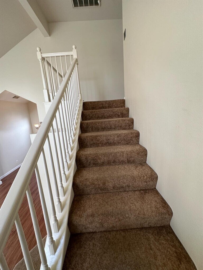 Beautiful two-story home located in Clovis near Peach and Alluvial! This well-maintained property features durable vinyl plank flooring throughout the downstairs and offers two spacious living areas. A convenient half bathroom is located just off the entryway for guests. The kitchen showcases neutral cabinetry and flows seamlessly into the second living space, complete with a sliding glass door that opens to the backyard. The laundry room is thoughtfully situated near the garage entrance for added convenience. Upstairs, you'll find all three bedrooms, including a comfortable primary suite with a private en-suite bathroom and a large closet. The hall bathroom features a tub/shower combination. Enjoy the spacious backyard with a built-in BBQ, ideal for outdoor gatherings. Situated in a fantastic location within the highly desirable Clovis Unified School District. One pet may be considered with additional rent. Renter's insurance is required, and yard care is included.