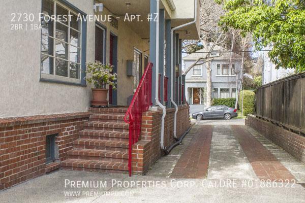 This Spacious Two Bedroom Has the Following Features and Benefits: Unique, Spacious & One of a Kind Upper Floor Unit with Hardwood Floors! Plenty of Natural Light & Located in One of the Best East Bay Area Neighborhoods - The Elmwood District! This Large Two Bedroom / Flexible Three, Has the following features and benefits: Walk to Berkeley Campus and Elmwood Shopping Hardwood Floors Throughout & Living Room and Dining Room Area Water and Garbage Included Located on Gorgeous Tree Lined Street Off Street Parking Available Quiet Neighborhood & Close to UC Berkeley, Bart, Shops, Freeways Pick Any Move-In Date Prior to 8/13! Option to Postpone for Covid Risks Low Move-In Costs-Waived Application Fees and Reduced Security Deposits! Professionally Managed for Premium Service Neighborhood Description: The Forest Street Walk Apartments is nestled on a beautiful tree-lined street that is blocked off from incoming traffic from College Ave which keeps this street quiet throughout the day. The neighborhood is great for walking, biking, and is the perfect central location for your commute to local freeways including Highways 13 and 24. You can easily walk to UC Berkeley Campus, Maybeck High School. Emerson Elementary is just around the corner. The Elmwood District is one of the most desirable neighborhoods to call home in the East Bay Area. This area borders College Avenue which offers various restaurants, shopping and various local services. Easy access to all public transportation and walking distance to the Clark Kerr Campus. Local favorites include the Elmwood Cafe, The Beanery , and La Mediterranee. The neighborhood is great for walking, biking, and is the perfect central location for your commute to local freeways. The Premium Difference: This property is professionally managed for premium service! That means that we are here to help with everything from maintenance in your unit to friendly personable customer service if you need something or have a question. This location offers the convenience of our online rent payment option as well. Forest Street Walk Apartments 2730 Forest Ave. Berkeley, CA 94705 PROPERTY DESCRIPTION This 4-Plex is located on a beautiful tree-lined street in a quiet and cozy neighborhood at the foot of the beautiful Berkeley Hills. This building has four apartments all with classic details such as high ceilings and stunning hardwood floors. These apartments all have spacious windows that bring in ample natural light throughout the year. Elegant hardwood floors and wood paneling give the units a classic modern feel. The apartments have a very spacious floor plan with a large kitchen, ample cabinet space, a large living room area, as well as a dining area. There is also off-street parking offered in the back of the building with a shared washer and dryer in the basement. THE PREMIUM DIFFERENCE This property is professionally managed for Premium Service! We treat you like a customer and you can expect a high level of service from a friendly staff who's primary goal is to make you happy. We resolve any maintenance issues quickly and efficiently. Our properties are well maintained inside and out. Why rent an ordinary property when you can live in a Premium Property? NEIGHBORHOOD INFORMATION Fall in love with the neighborhood right on the border of Berkeley and Oakland. Two blocks in one direction is a Whole Foods and two blocks in the other direction is the amazing White Horse Inn bar. The 50-year-old Smokehouse burger joint is half a block away and you can find spectacular Ethiopian, Burmese, Thai, and Vietnamese restaurants just further down. For all that is close by, it's also a quiet, safe and residential block - best of all worlds! Plus, with no traffic, the drive to SF is only 15 minutes and it’s a very pretty 10 minute walk to the ASHBY BART.