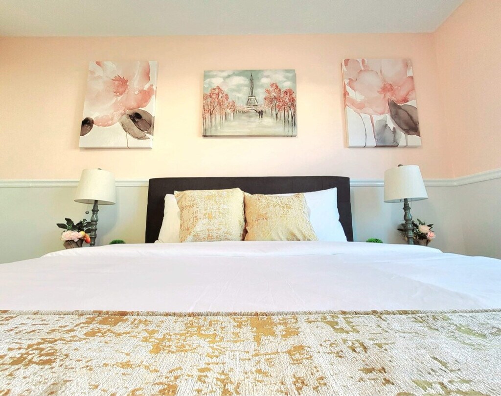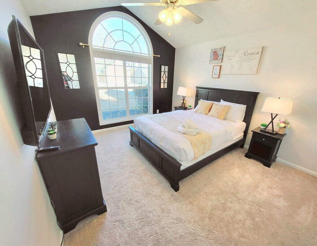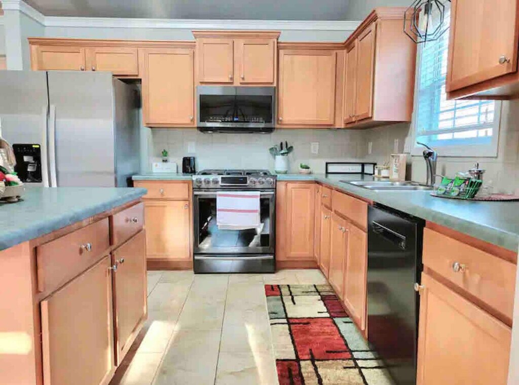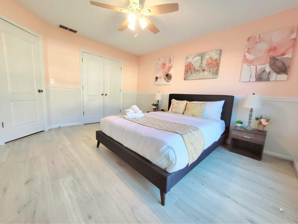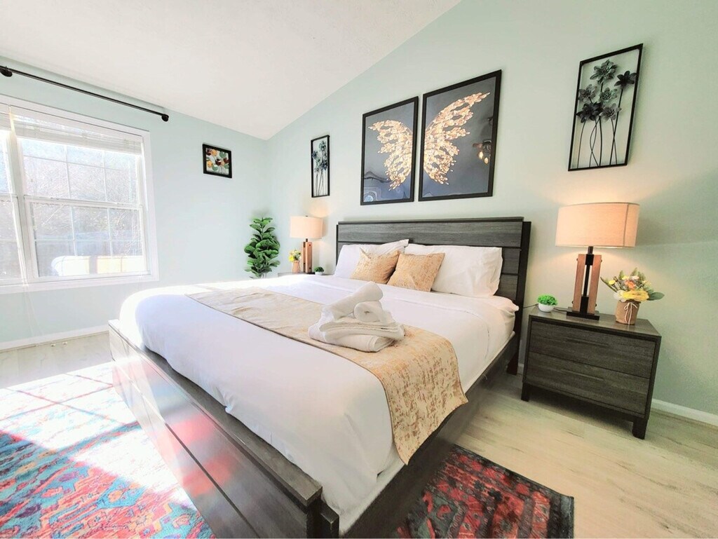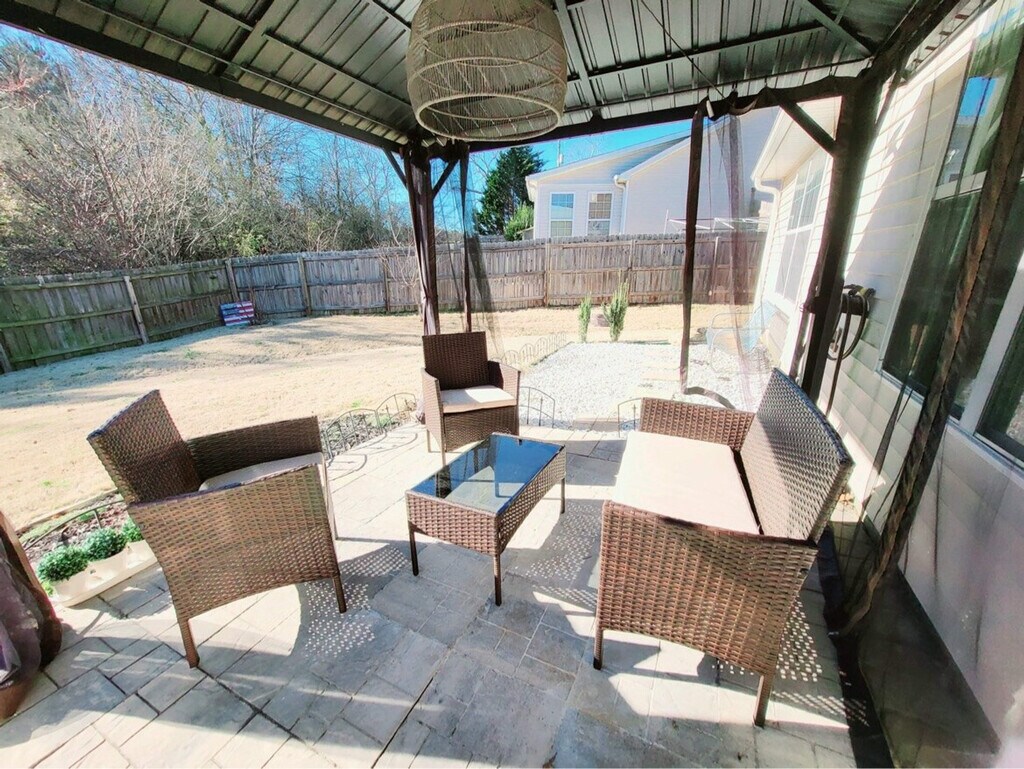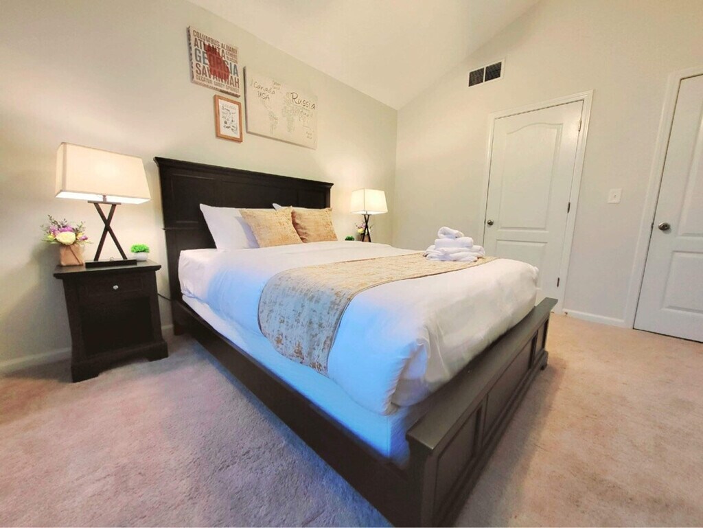 Welcome to this hidden gem in the heart of Buford! This modern yet cozy 4-bedroom, 2-bathroom home has been newly renovated with bright and modern decor throughout. Located in a prime area of Buford, it's less than 5 minutes from the Mall of Georgia, approximately 15-20 minutes from Lake Lanier, and just minutes from Gas South Arena. The home is close to major highways, making it a convenient choice for your stay. Feel the comforts of home while on vacation in this clean and beautiful space. The living area features a comfortable couch and a 55-inch TV, along with a desk and chair for a working space. The kitchen and dining area include a cozy dining table and chairs, a full-sized refrigerator, microwave, oven, and coffee maker/kettle. While it may not be a fully equipped kitchen of the quality like your home, it is equipped with basic kitchenware to make simple meals. The master bedroom offers a king-sized bed, a full bathroom with a shower, and a walk-in closet. Additional amenities include free Wi-Fi, an onsite washer and dryer, and an extra queen air mattress available on site. For parties greater than 10 people, an additional air mattress is available upon request. Mid-stay cleaning services can be requested for an additional fee. Please note that this is a pet-free rental, but small pets under 25 lbs may be approved with a nonrefundable pet fee of $150 per pet per stay, with a maximum of 2 pets per stay. Situated in a prime location, this home is less than 5 minutes from the Mall of Georgia, approximately 15-20 minutes from Lake Lanier, and just minutes from Gas South Arena. Its proximity to major highways ensures easy access to various destinations, making it an ideal choice for medical professionals, business or corporate personnel, and insurance clients. Check-in is at 4 pm and check-out is strictly at 10 am, with a penalty fee of half the night’s stay for late check-out. Smoking, including electronic cigarettes, is prohibited anywhere inside or outside within 10 feet of the property, with a $250 cleaning charge for violations. No loud noise, parties, or events that disturb neighbors are allowed. The maximum capacity of the house is 10 people, and no unregistered guests are allowed overnight, with a $50 charge per additional guest per night. The property is equipped with cameras outside for added security. Guests must include all individuals, including children and infants, in the booking and provide their full names and ages. The property is pet-free unless prior authorization is given. Please respect community guidelines and keep the property clean inside and out. Parking is limited to 4 standard-size cars on the premises, with no overnight street parking allowed. The home includes a desk and chair for a working space, providing a comfortable environment for remote work.